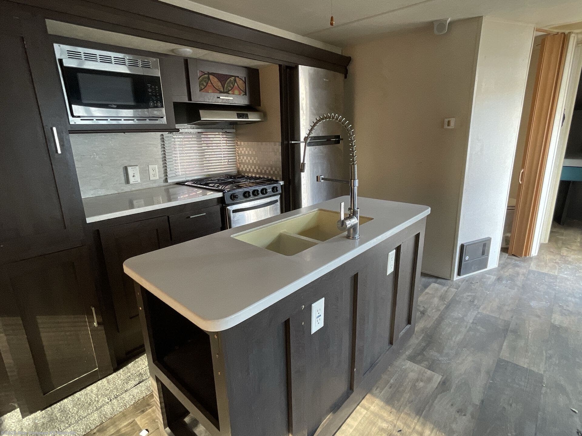 Plan to make plenty of memories with your family when you choose to camp in a Forest River Salem travel trailer! Along the exterior you will find helpful features such as an oversized pass-through storage compartment that will allow you to bring along more of what you love and true stabilizer jacks with J.T. Strong Arms to provide a firm and solid support for the Salem. The kitchens are sure to draw your attention with the 10.7 Everchill stainless steel refrigerator, the LG solid surface countertops, the residential designer spring faucet, and the stainless steel roll-up sink cover, and you will only find doors leading into the master bedroom, never curtains.