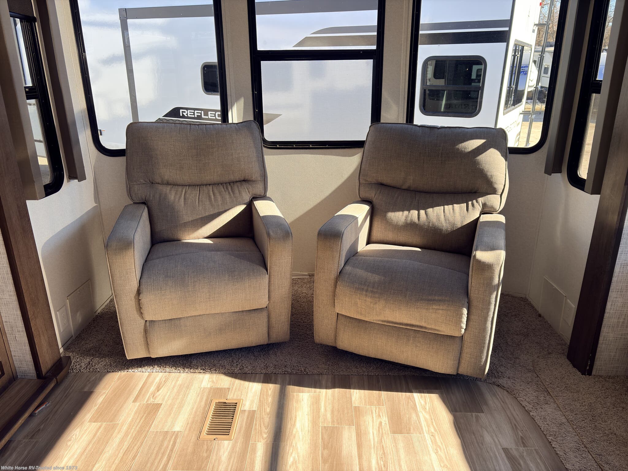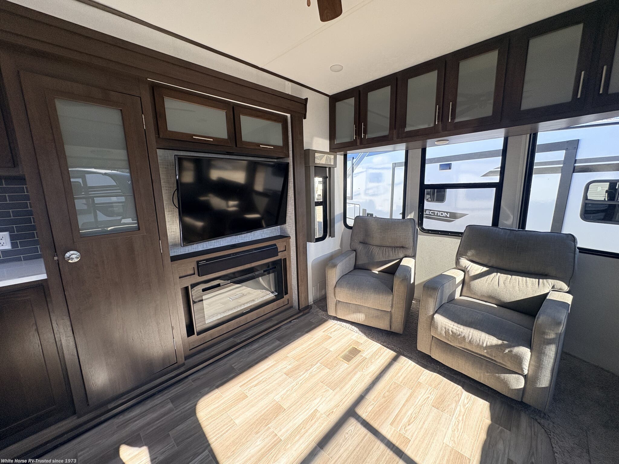 - Front Living Area w/ Trifold Sofa , Rocker Recliners, & Electric Fireplace