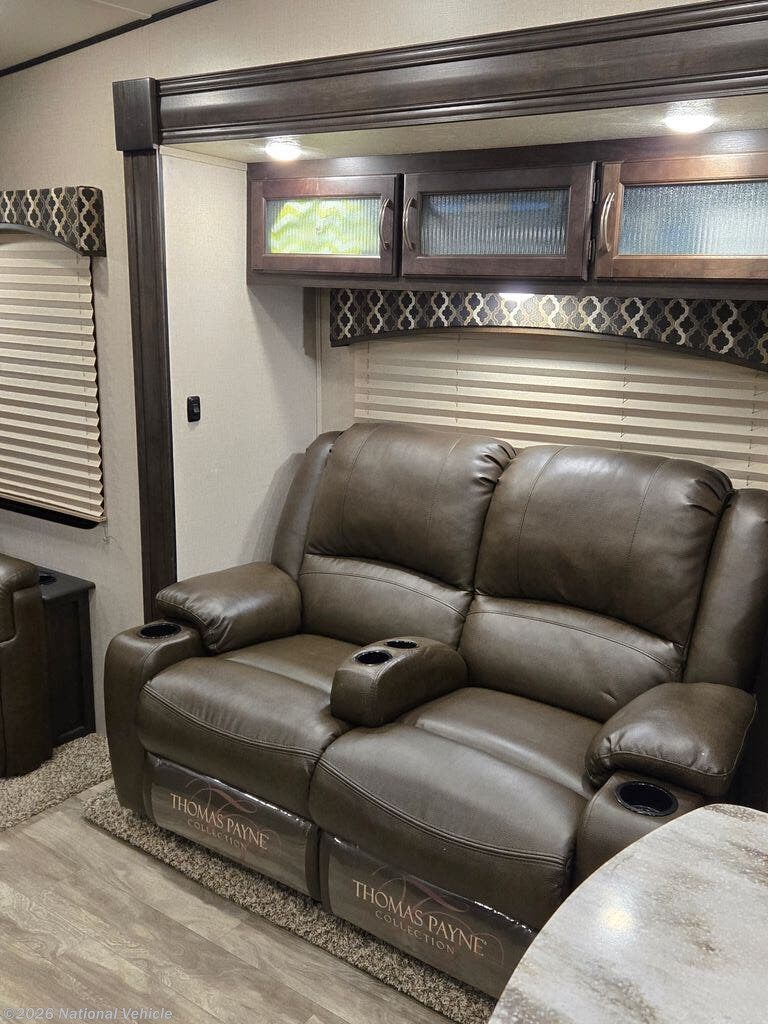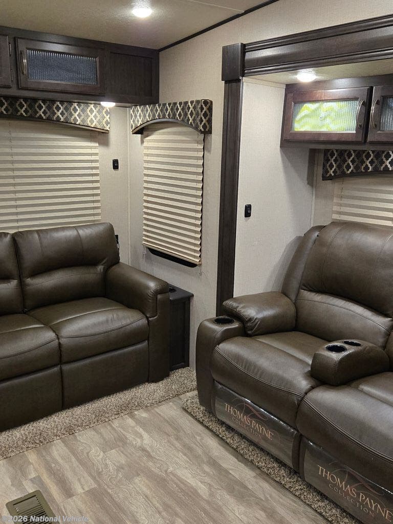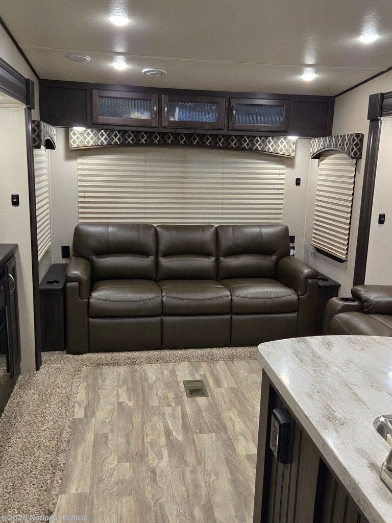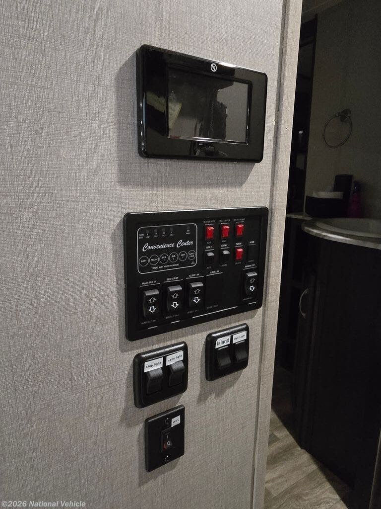 Step inside to discover a bright, spacious rear-living floorplan that feels like home. Plush seating, large panoramic windows, and elegant cabinetry create an inviting atmosphere for relaxing or entertaining. The open-concept kitchen features modern appliances, generous counter space, and ample storage?ideal for preparing meals on the road.