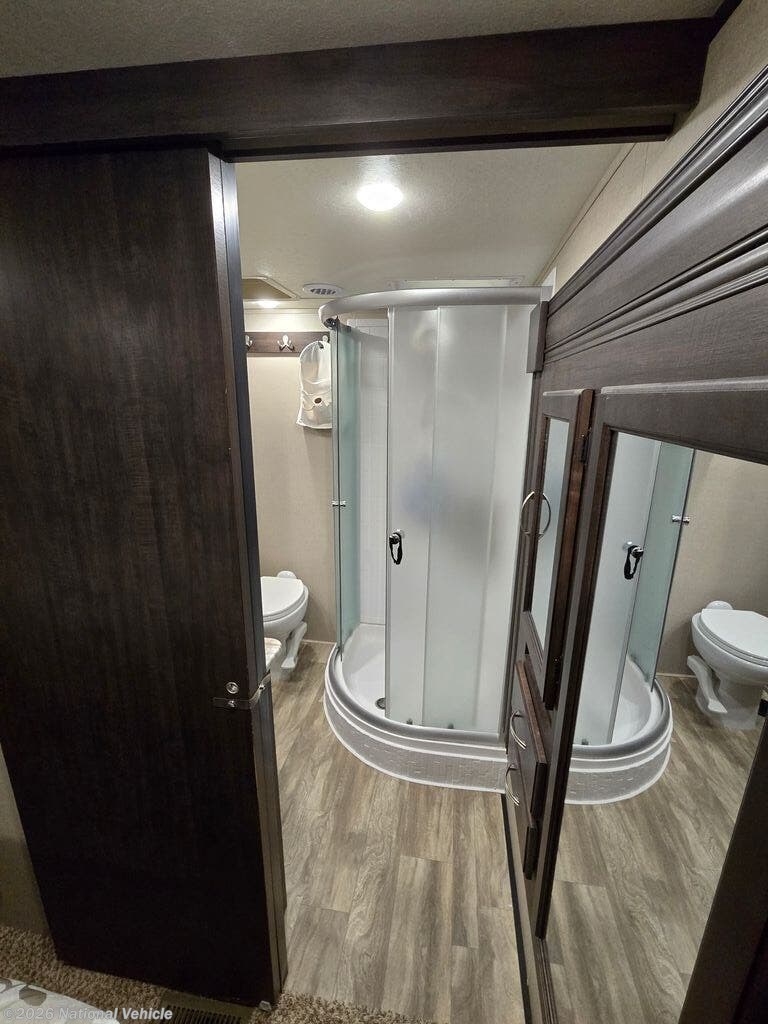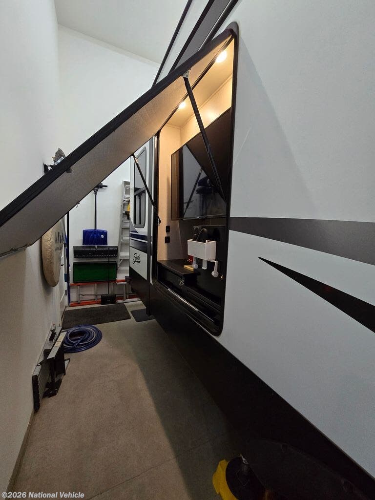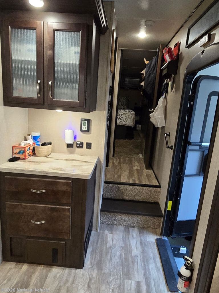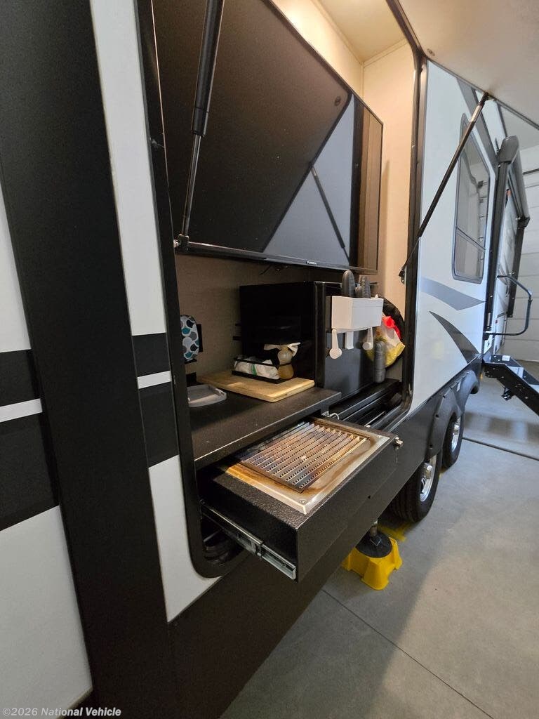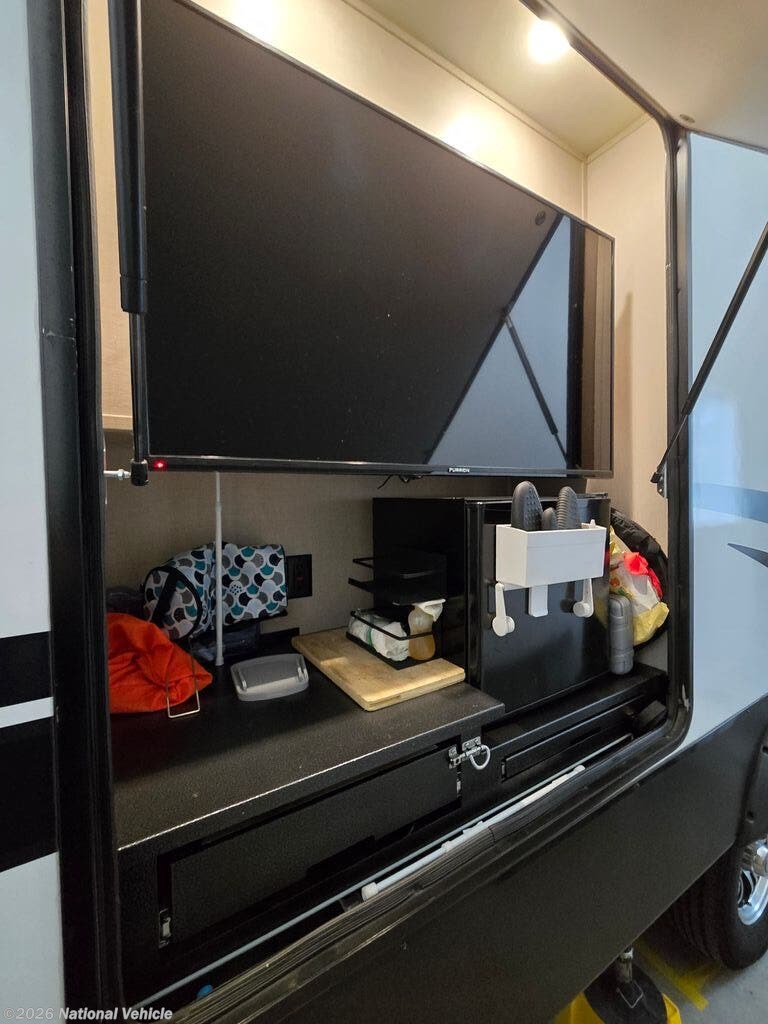 Step inside to discover a bright, spacious rear-living floorplan that feels like home. Plush seating, large panoramic windows, and elegant cabinetry create an inviting atmosphere for relaxing or entertaining. The open-concept kitchen features modern appliances, generous counter space, and ample storage?ideal for preparing meals on the road.