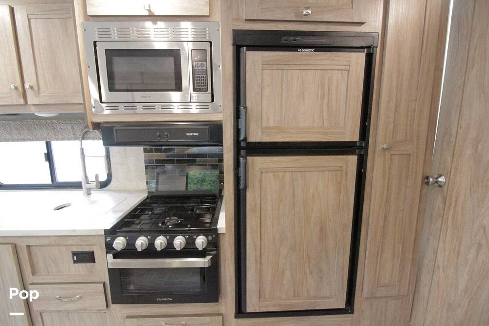 The interior of the RV is airy and has an open feel to it. The light overall color palette lends a modern touch as well.