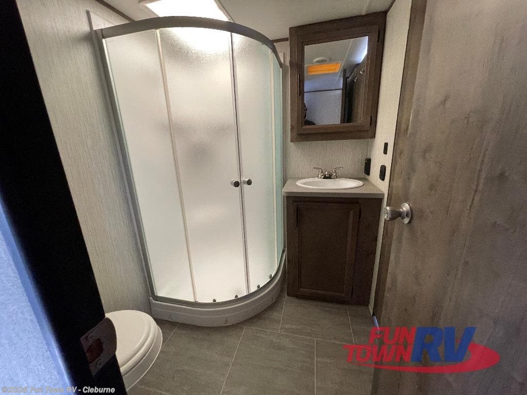 If you are looking for a unit that is both accommodating and comfortable, then this Vengeance toy hauler is for you. The private master suite will be your favorite place to relax and unwind from the exhaustion of the day, and your children will jump at the opportunity to spend their nights sleeping in the loft. Because this unit has both a full and half bath, no one needs to fight over the amount of time it takes to get ready each morning, and the shower skylight is what brings in the welcoming sunlight that brightens up the bathroom and keeps it feeling fresh.