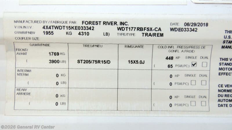 Request More Info on this 2019 Forest River WILDWOOD-FSX 177RB Offered for sale by General RV Center
