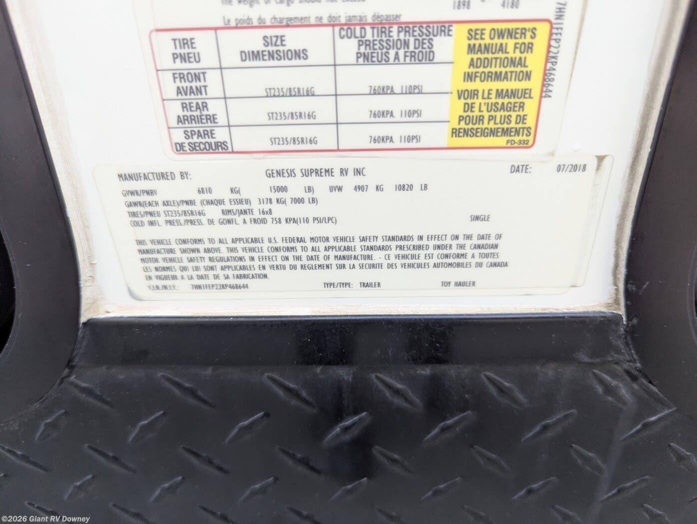 Visit Giant RV today to explore the 2019 Genesis Supreme 32CR — a toy hauler built for adventure, durability, and bringing your toys wherever the road takes you.
