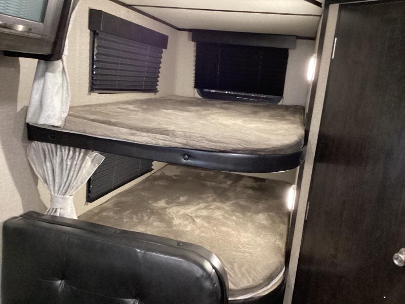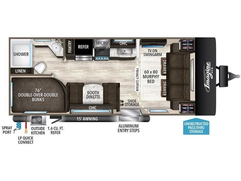The 2019 Grand Design Imagine XLS 21BHE is a versatile and well-equipped travel trailer designed to offer comfort and convenience for your adventures on the road. This RV is part of the Imagine XLS series, known for its lightweight design and high-quality construction, making it an ideal choice for both seasoned travelers and those new to the RV lifestyle. The exterior of the Imagine XLS 21BHE is built with durability and style in mind. It features a gelcoat fiberglass exterior with a front rock guard, providing protection against the elements and road debris. The aluminum structure and laminate construction ensure a sturdy build, while the seamless roof membrane and enclosed heated underbelly offer four-season protection. The travel trailer is equipped with aluminum wheels, radial tires, and a spare tire with a carrier, ensuring a smooth and reliable ride. A power tongue jack and rear ladder add to the convenience, while the pass-through LED motion light and insulated magnetic catch doors enhance functionality. Inside, the living spaces are designed for comfort and practicality. The 78-inch ceiling height and large panoramic windows create an open and airy atmosphere. The power patio awning with LED lighting extends your living space outdoors, while the aluminum entry steps and 28-inch entry door provide easy access. The interior features LED lighting, deep tint safety glass windows, roller shades, and premium window treatments for added privacy and ambiance. The dining area is equipped with reversible dinette cushions and a telescoping dinette table, allowing for flexible seating arrangements. The kitchen boasts residential countertops, a deep stainless steel sink with a sink cover, and a pulldown sprayer faucet. Cooking amenities include an 8-cubic-foot refrigerator, a range with an oven, and a microwave, ensuring you have everything you need to prepare meals on the go. For entertainment, the Imagine XLS 21BHE comes with a high-definition LED TV, a DVD HDMI Bluetooth stereo, and outdoor speakers. It is also prepped for a backup camera, cable TV, and satellite, keeping you connected and entertained wherever you are. Sleeping accommodations include a versatile Murphy bed and a queen bed, both with residential bedspreads for a comfortable night's sleep. Bedroom closets provide ample storage for your belongings. The bathroom features a walk-in shower with a skylight overhead, a medicine cabinet mirror, and a power vent fan, offering a spa-like experience. Mechanical features include a solar power inlet, a battery disconnect switch, two 20-pound LP bottles with a cover, and a 30-amp detachable service cord. The RV is equipped with a 25k high-capacity furnace, a 15k low-profile ducted AC, a high-capacity water pump, and a quick recovery hot water system. The 2-inch fresh water drain, enclosed heated dump valves, and black tank flush system ensure efficient water management. Overall, the 2019 Grand Design Imagine XLS 21BHE is a well-rounded travel trailer that combines comfort, convenience, and durability, making it an excellent choice for your next adventure. Whether you're exploring the great outdoors or enjoying a weekend getaway, this RV is designed to meet your needs and enhance your travel experience. ???