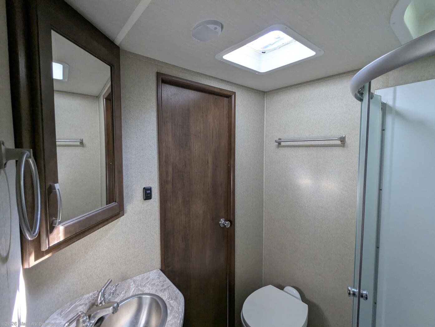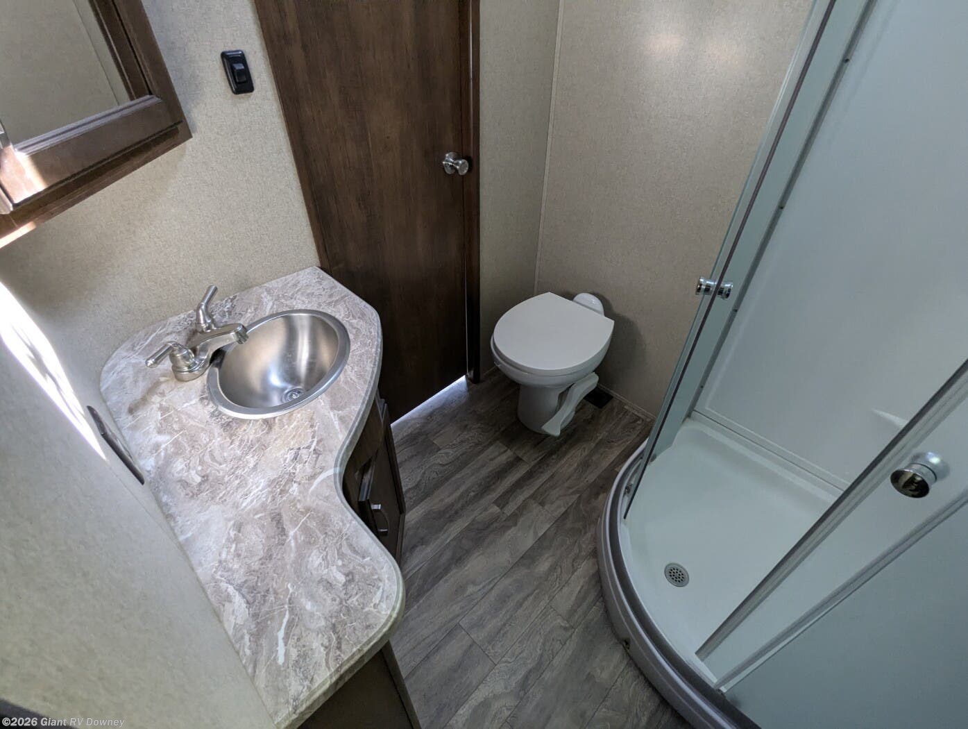 • Private Master Suite & Extended Season Features including a queen bed, large wardrobe, heated/enclosed underbelly, ducted A/C, 40K BTU furnace, and 60-gallon fresh water capacity for longer trips.