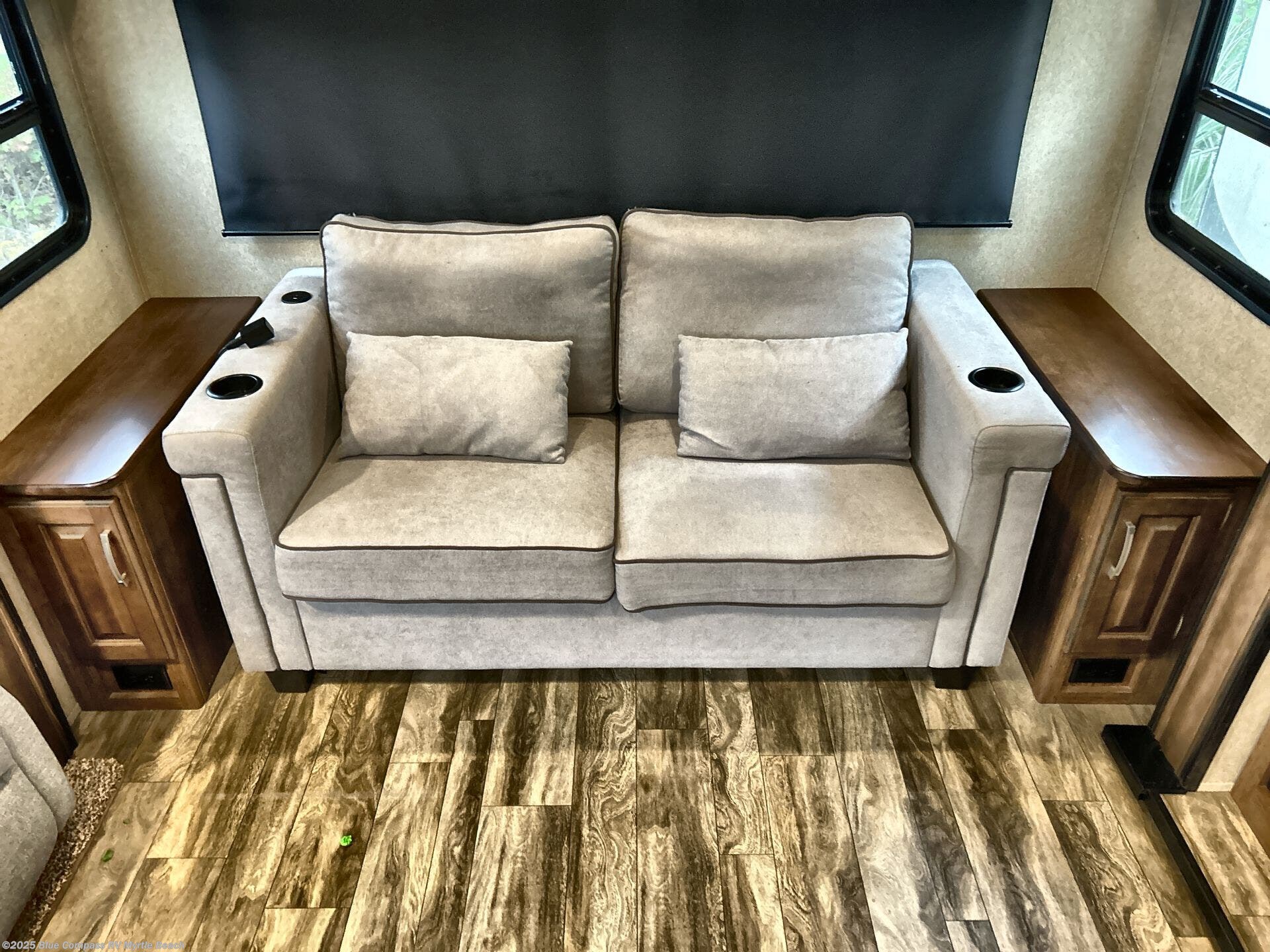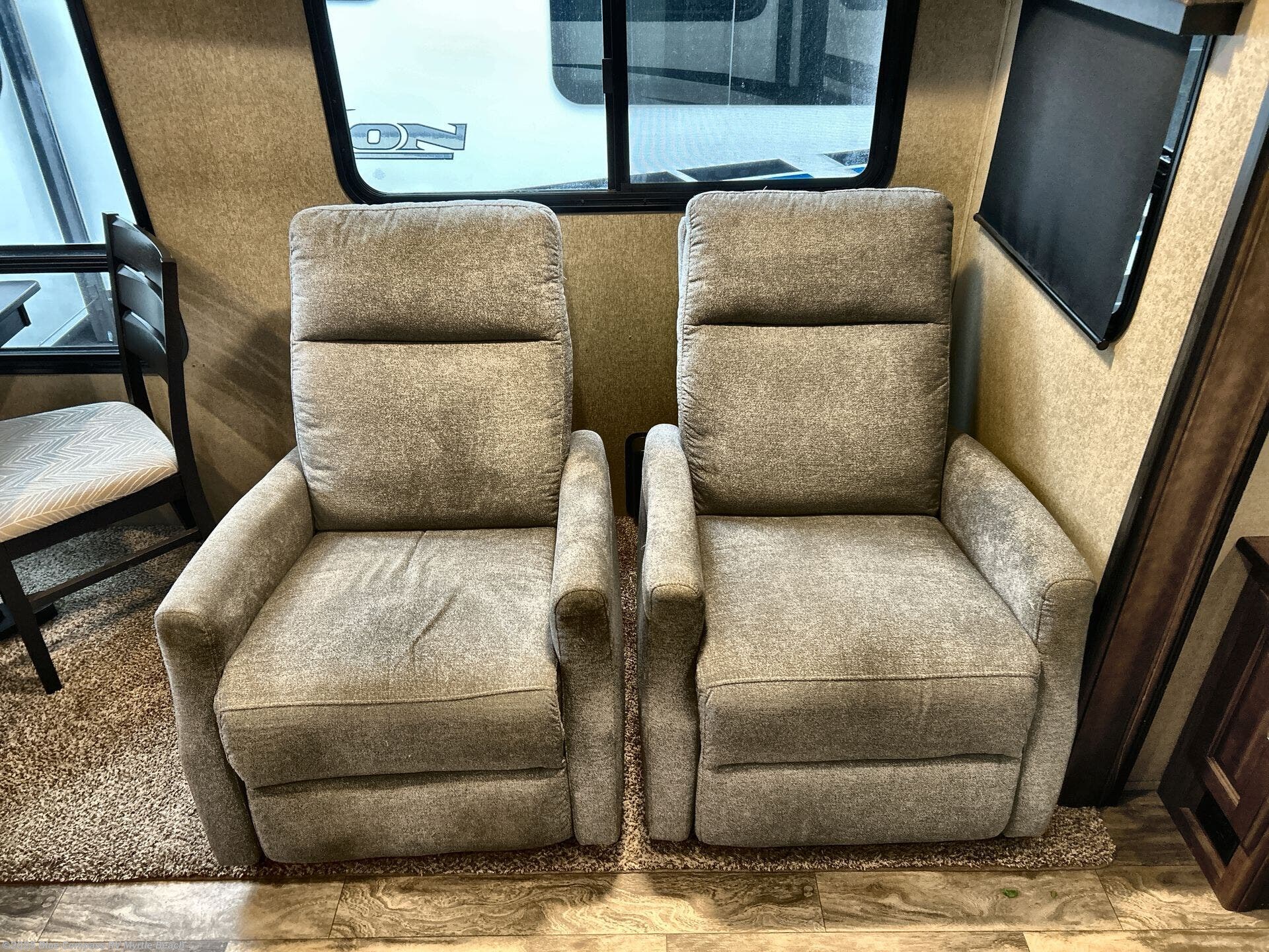 Envision this Reflection 337RLS fifth wheel setup at your favorite RV park for a month. Now picture yourself talking to your friends while relaxing under one of the two awnings while you decide to unload the outdoor gear from the unobstructed pass-through compartment. Your spouse is probably inside cleaning up before lunch time or relaxing on the theater seating. The gourmet kitchen allows you to make just about any meal you desire, and the full bathroom is a "must have". You will find plenty of seating for everyone to watch the 40" TV, and the tri-fold sofa bed allows you to invite overnight guests when you like. Take a look today!