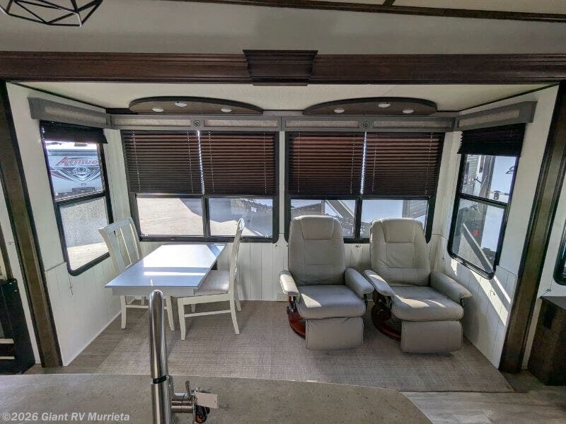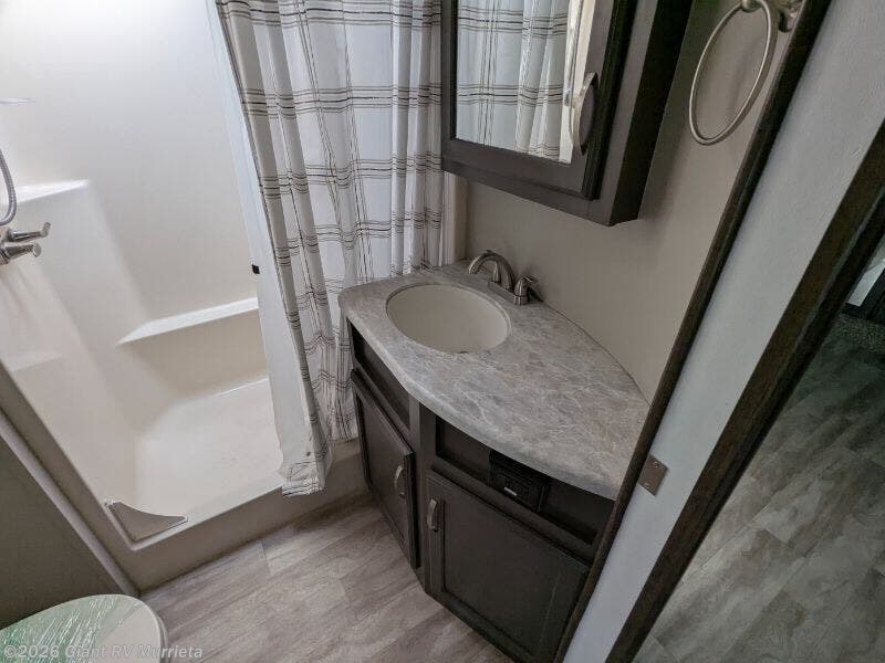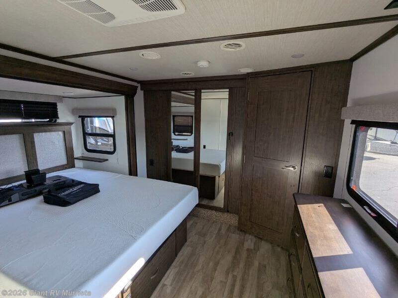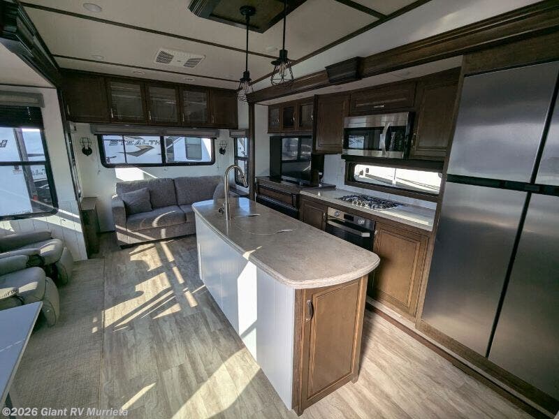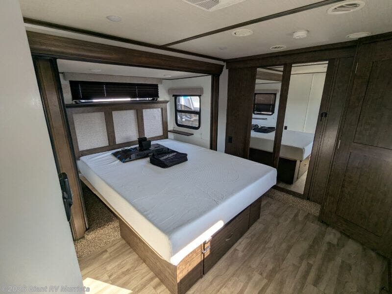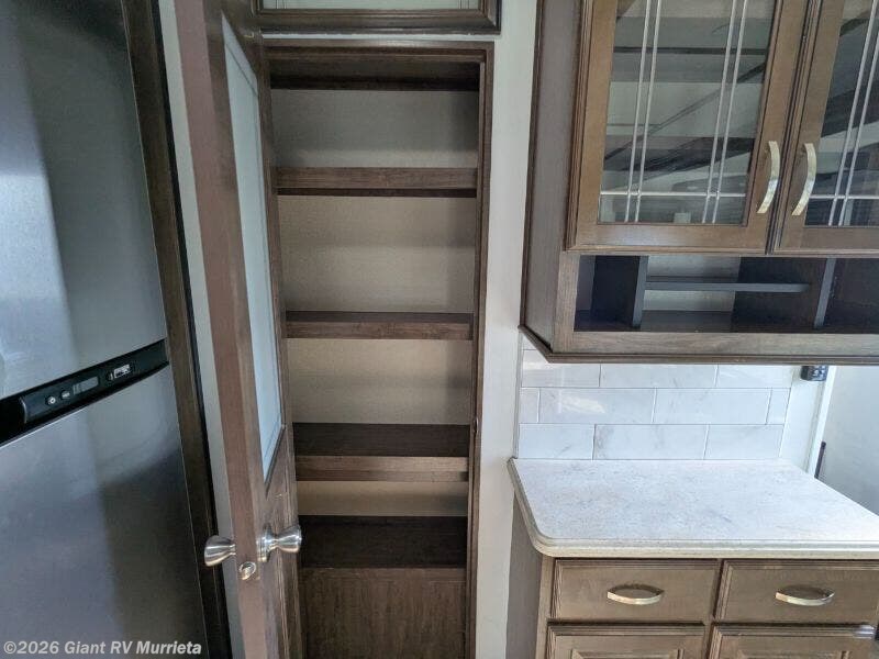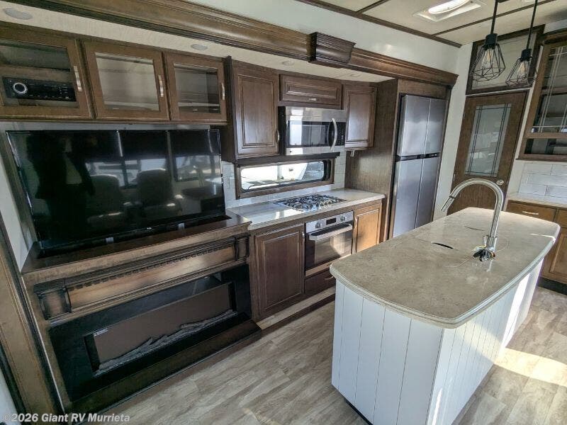 Plan a luxurious getaway with the 2019 Grand Design Solitude 310GK fifth wheel at Giant RV in California! Ideal for couples, this RV features a rear living area with theater seating for cozy evenings, a front queen bedroom for restful sleep, and three slide-outs for spacious living, sleeping up to 4. The kitchen boasts a 12 cu. ft. fridge to keep food fresh, a 3-burner cooktop for gourmet meals, and a convection microwave for quick snacks. Enjoy dual 17’ power awnings for shaded relaxation. Equipped with dual 15,000 BTU A/Cs for cool comfort, a 40,000 BTU furnace for warmth, and auto-leveling jacks for easy setup.