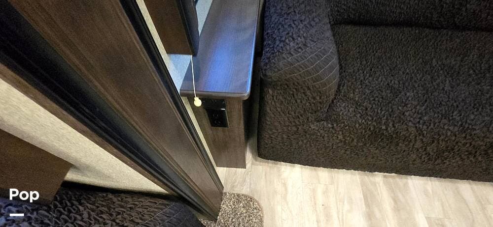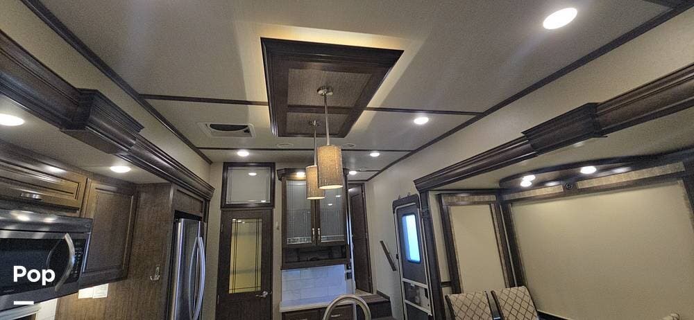 Step inside to a spacious and elegant living area with residential-style furnishings and thoughtful design. The dual opposing slide-outs create an open concept layout, allowing for an expansive central living room with high ceilings.