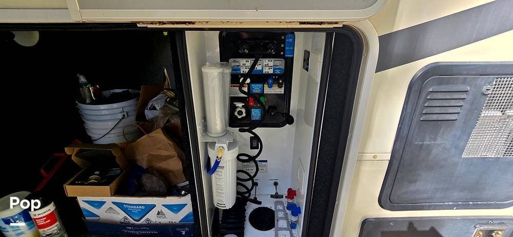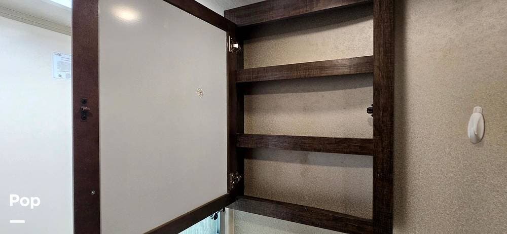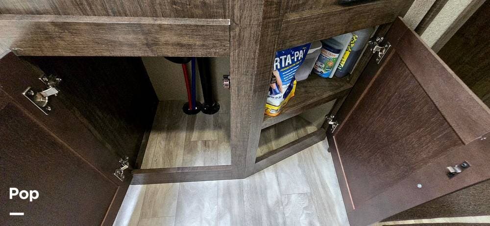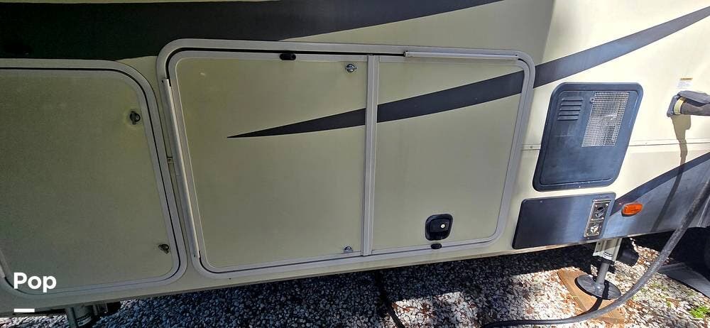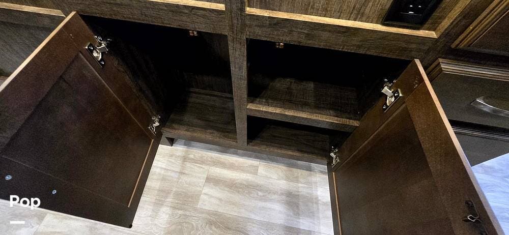Large exterior storage compartments offer plenty of space for gear and camping accessories, while the slam-latch baggage doors and motion-sensor lighting make access easy and convenient. A factory-installed roof ladder and backup camera prep add practicality and peace of mind when traveling or parking.
