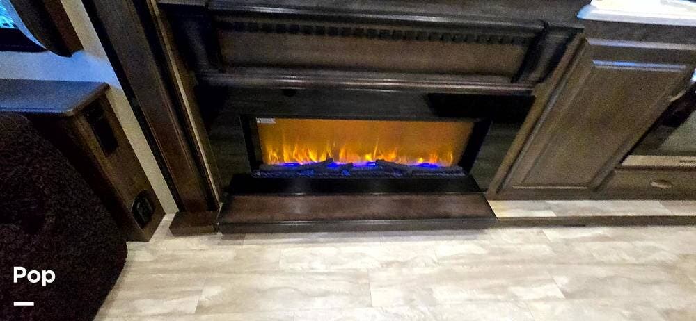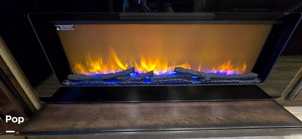 The theater recliners offer comfortable seating, and the large entertainment center that includes a 40-inch LED TV, on a televator and an electric fireplace for added warmth and ambiance.