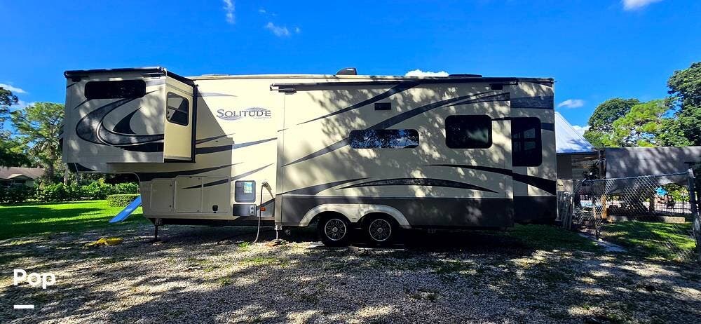 For Sale and Located in West Palm Beach, Florida, is this 2019 Grand Design Solitude 310GK-R Fifth Wheel RV.