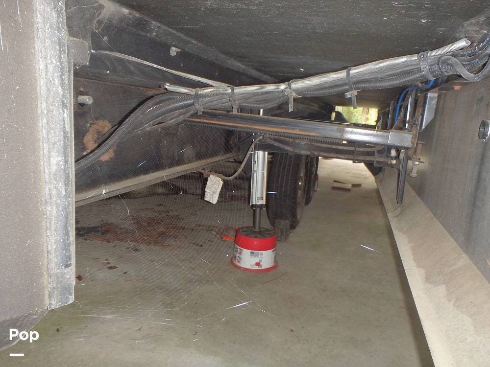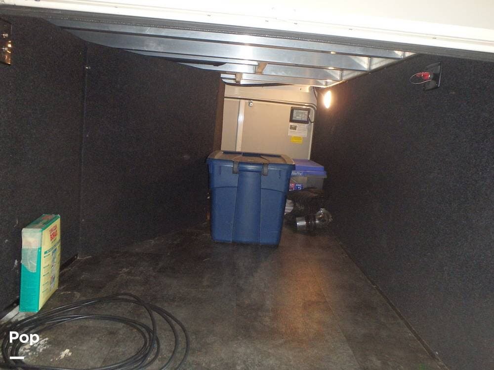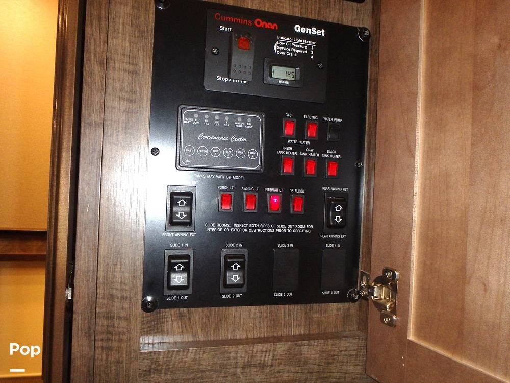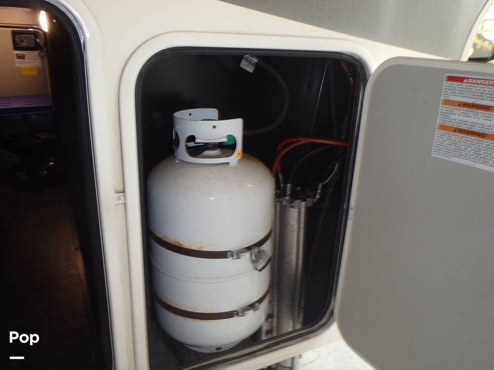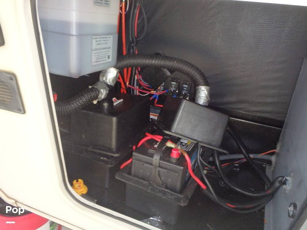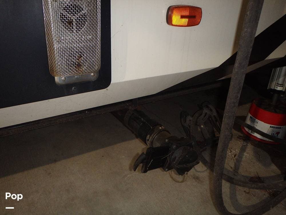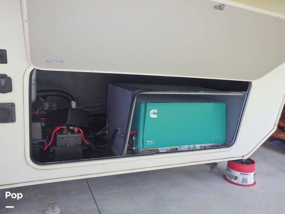 Upgrades the owner has made include the Onan 5500 Watt Generator, two 30-pound propane tanks, a heat pump for the living area's A/C, two AGM deep-cycle batteries, and a sewer hose storage compartment in the exterior rear of the unit.