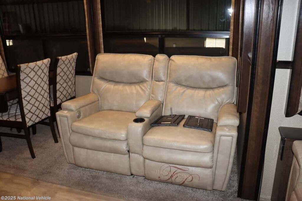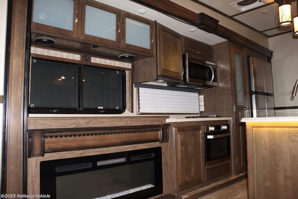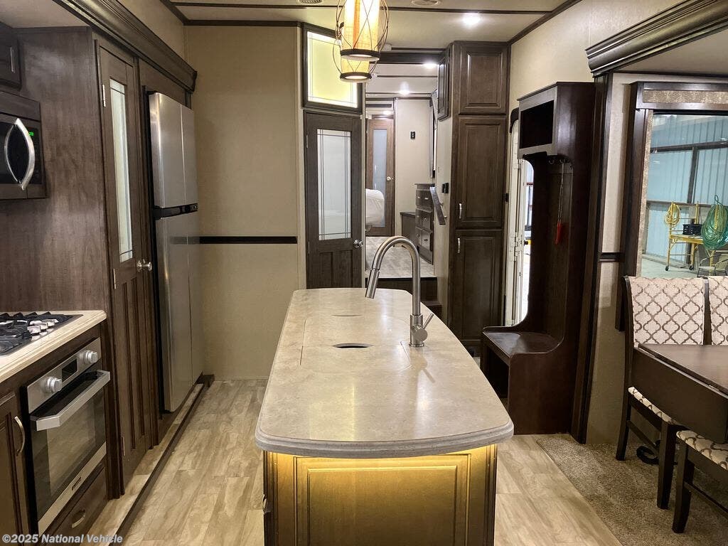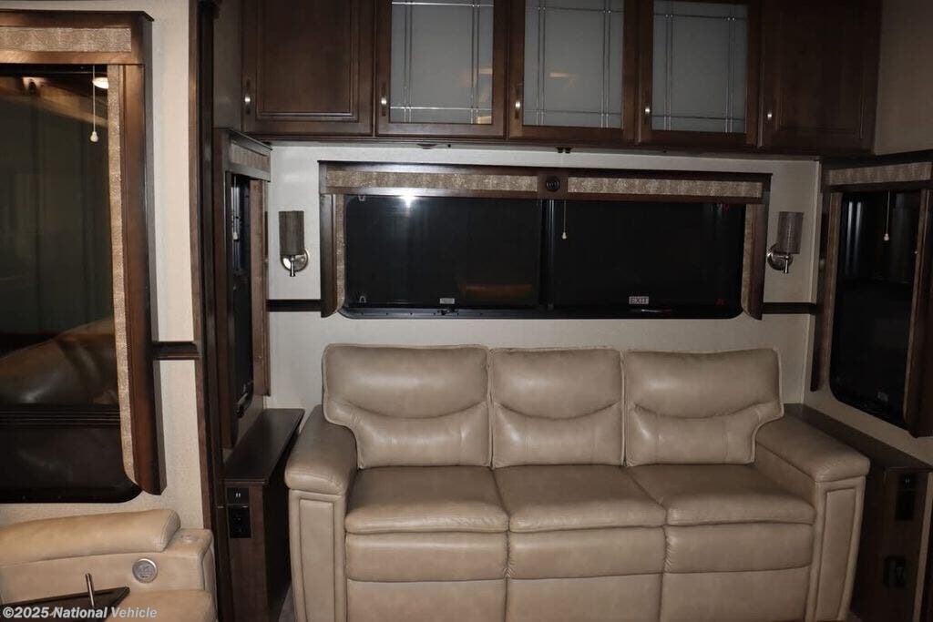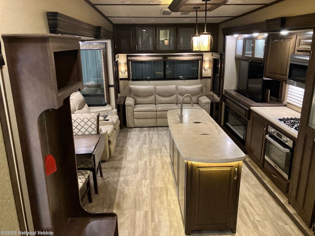 Turnkey, luxury fifth-wheel built for long-haul comfort and weekend showstopping. This pre-COVID 2019 Solitude M-373FB blends residential appointments, clever floorplan flow and heavy-duty construction ? but the part that really sets this unit apart is care: always stored indoors and serviced on schedule. Extras include a factory-quality Onan generator (stored indoors when not in use) and thoughtfully maintained systems throughout.