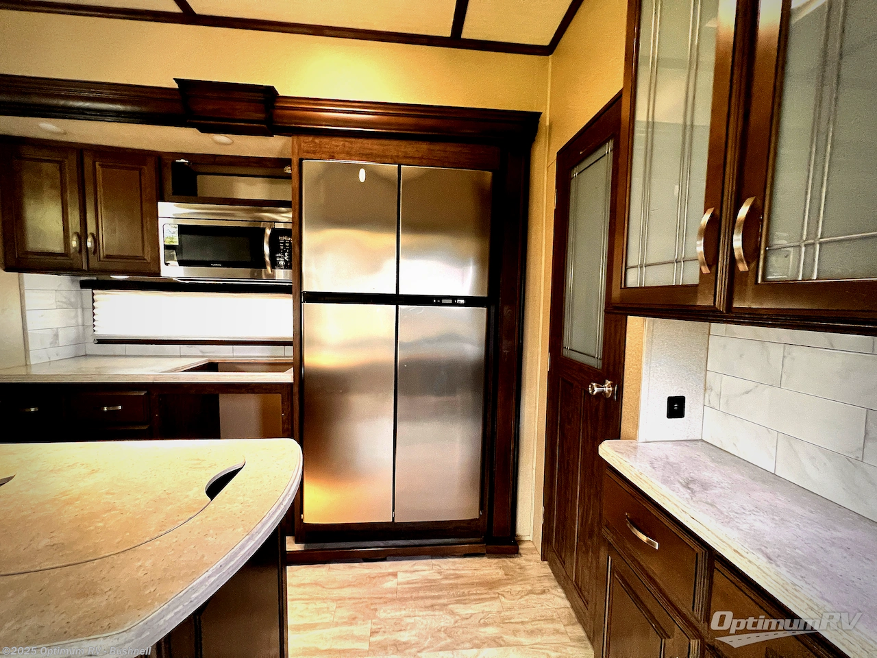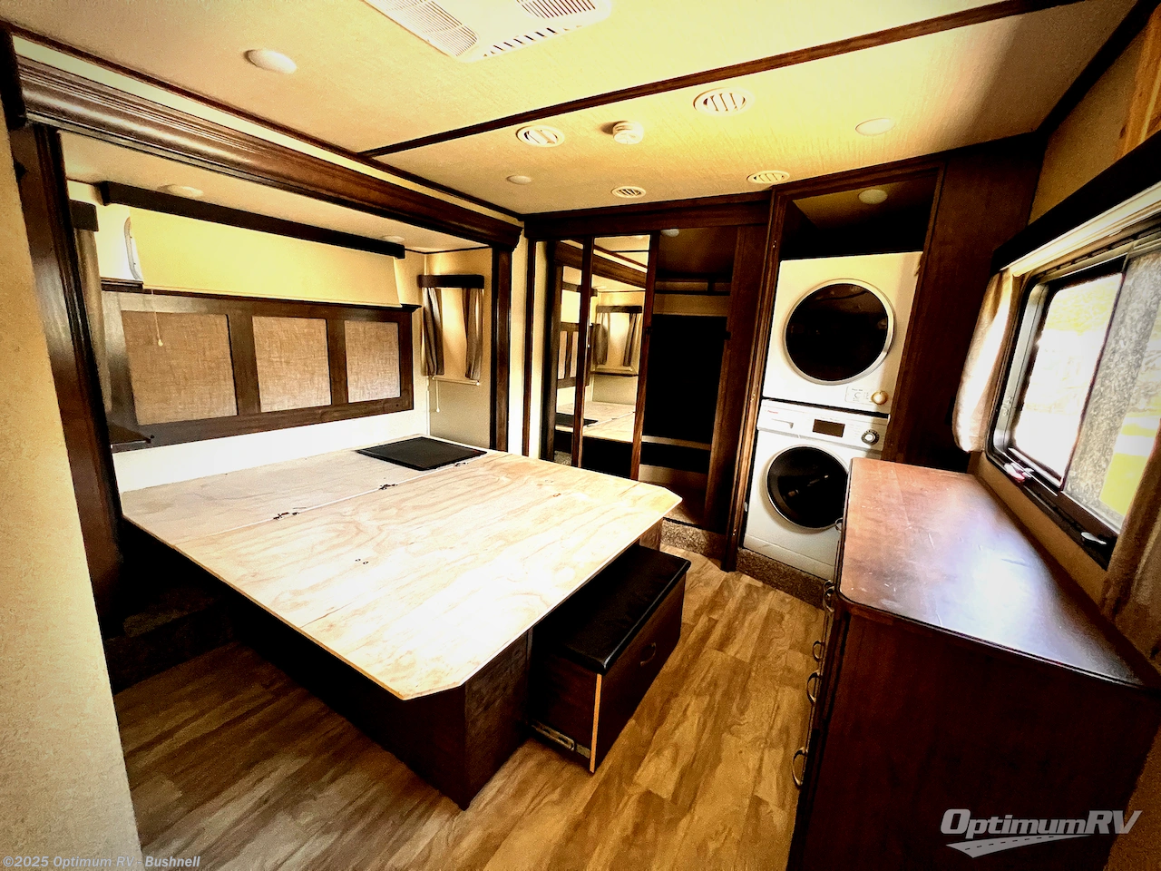 Imagine traveling with comforts of home including plenty of interior floor space to move around, extra sleeping space for the kids or grandkids, and plenty of storage for everything you might need for an extended stay. The unique exterior rear storage includes a sliding tray allowing easy access to the gear in the back. Inside, the front master bedroom will not disappoint with a pullout ottoman, flip-top dresser, and a TV to mention a few features. The chef will surely love making meals with the professional grade stainless steel cooktop, and the buffet adds additional counter space to serve food and/or place your keys and things on. You will find many more features to love, and options to choose from.