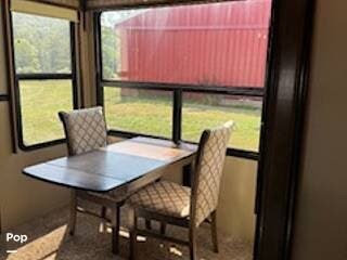 Across is a free-standing dining room table with chairs.
