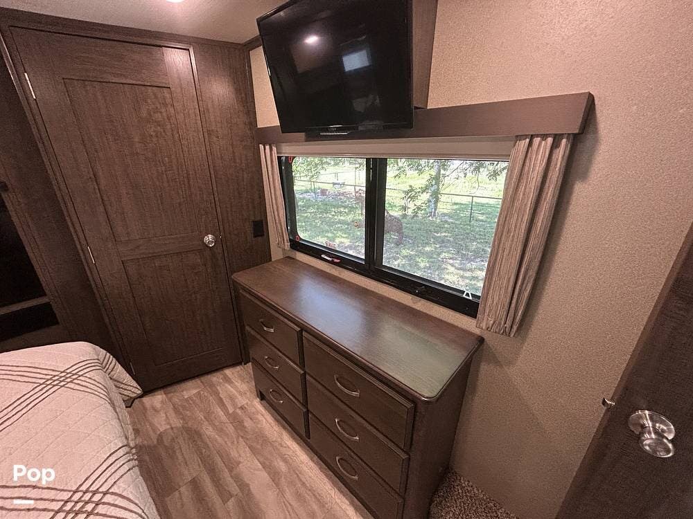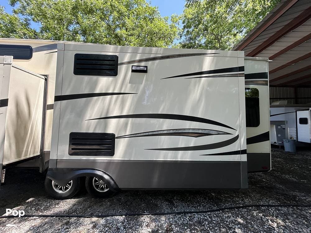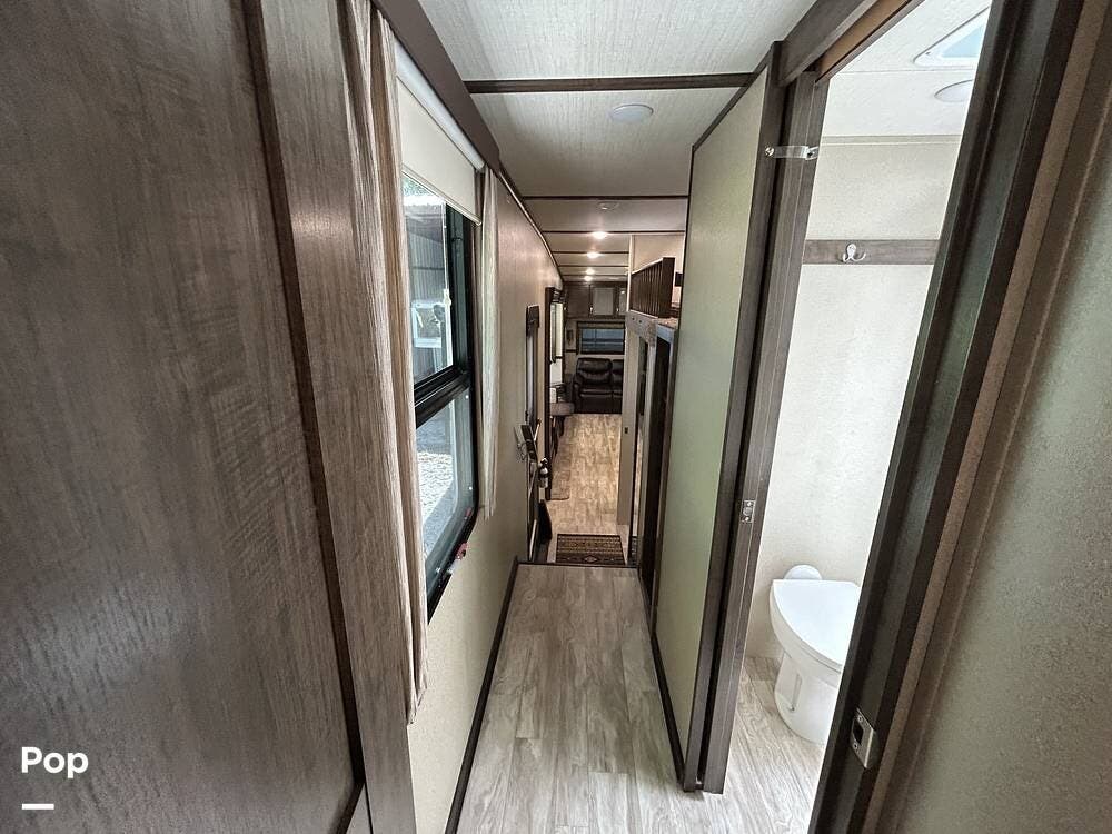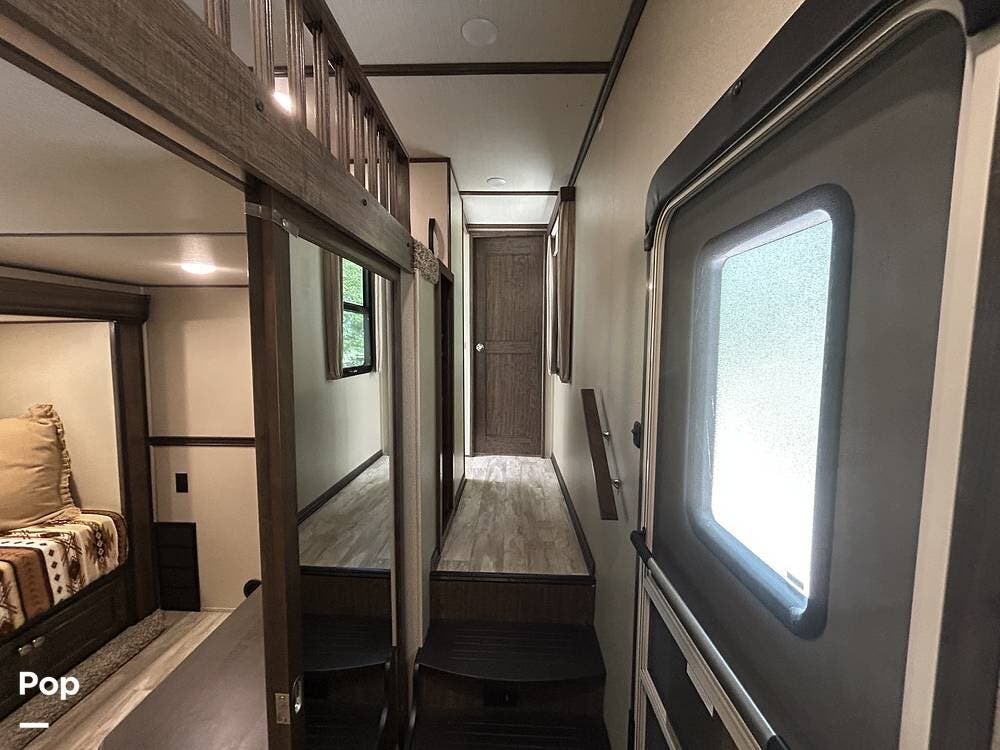 This 2019 SOLITUDE (BY GRAND DESIGN) 377 MBS fifth wheel is in great condition and designed with families in mind, but it's also perfect for anyone working remotely. The mid-bunk room features a sofa, desk area, and ample storage, making it an ideal space for a mobile office or additional sleeping quarters. Above the bunk room is a spacious loft, perfect for guests who want to spread out and relax. The RV also features the Arctic package, which heats the storage area.