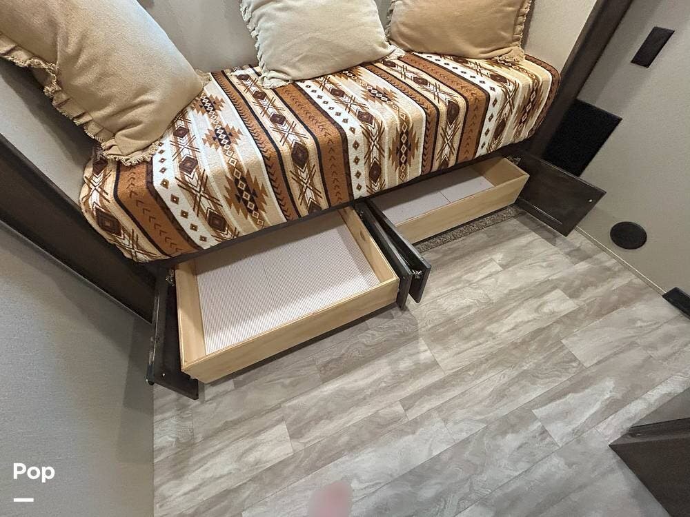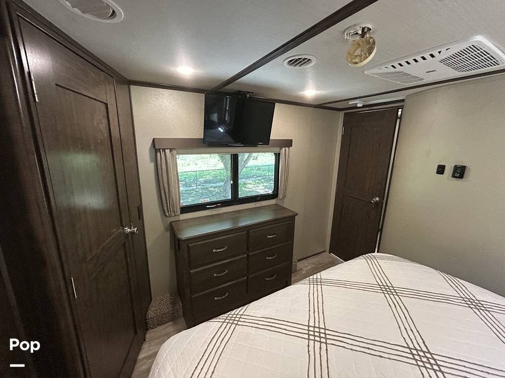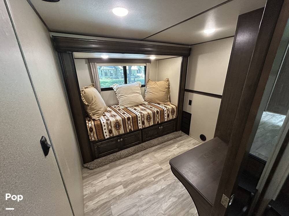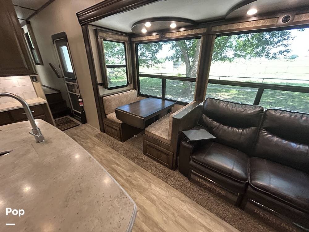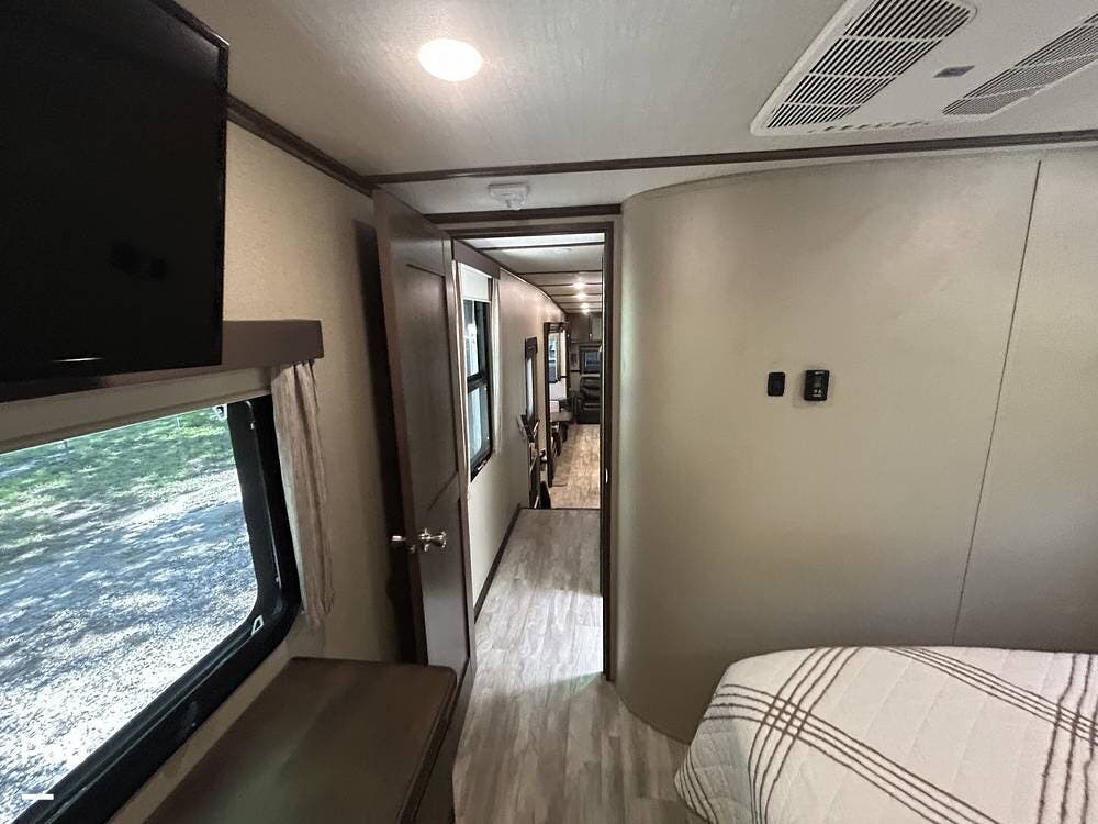This 2019 SOLITUDE (BY GRAND DESIGN) 377 MBS fifth wheel is in great condition and designed with families in mind, but it's also perfect for anyone working remotely. The mid-bunk room features a sofa, desk area, and ample storage, making it an ideal space for a mobile office or additional sleeping quarters. Above the bunk room is a spacious loft, perfect for guests who want to spread out and relax. The RV also features the Arctic package, which heats the storage area.