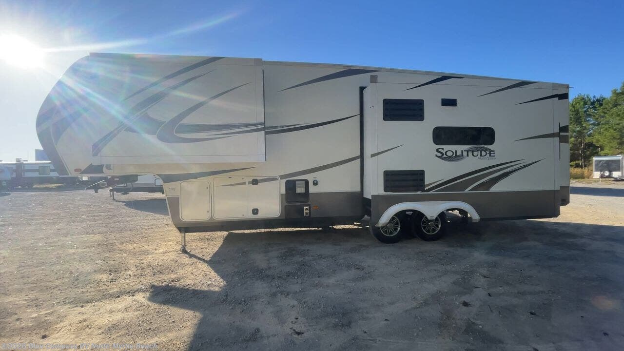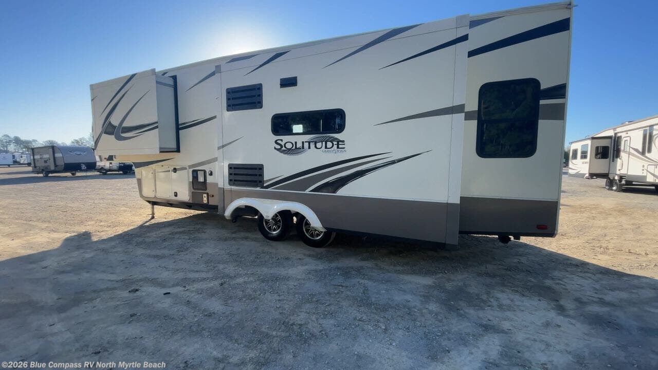 With each Solitude S-Class fifth wheel by Grand Design you will receive affordable luxury for your extended stays or weekend get-a-ways. From the solid foundation including Equa-Flex suspension to the taller ceilings, taller and deeper cabinets, the power reclining theatre seating with swivel tables including LED lighting, plus a heat and massage function, a Stealth AC system, and the Weather-Tek package which allows you to travel any season you choose. It's time to enjoy luxury living where ever you decide to land.