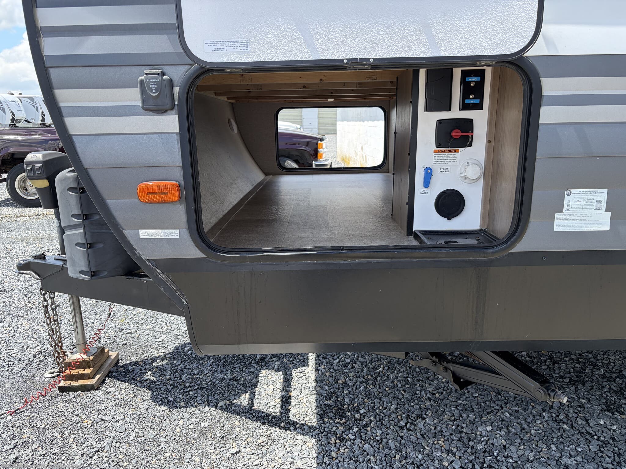 Enjoy your RV travels in style with this 2019 Grand Design Transcend 26RLS. Ready to be a proud Grand Design owner? This 2019 Grand Design Transcend 26RLS is the perfect fit. The sleep capacity allows you to bring up to 6 along on your travels in this rig. The one slide allows for easy setup and just enough extra space inside. Cook up the best camping meals with appliances like the fridge, oven. The theater seating make it easy to spend time together as a family. Use the dinette for dinner time, homeschooling or remote work days. Traveling couples love this rig thanks to the queen bed. If you like your rig cool in the summer and warm in winter, this heating option can do the trick. The 52 gallon fresh water tank is just right for easy RV traveling. While the inside of this rig is enough on its own, the outside also features alloy wheels, aluminum entrance steps, black tank flush, detachable, detachable power cord, diamond shield paint protection film, enclosed underbelly, heated underbelly, ladder, pass thru storage, power awning, power hitch jack, power roof vent, skylight, slide-out awning, slideout and stabilizer jacks. Pass-through storage allows for easy access to all your gear.