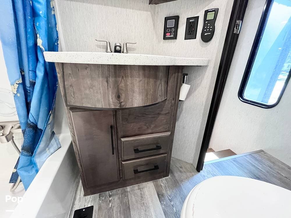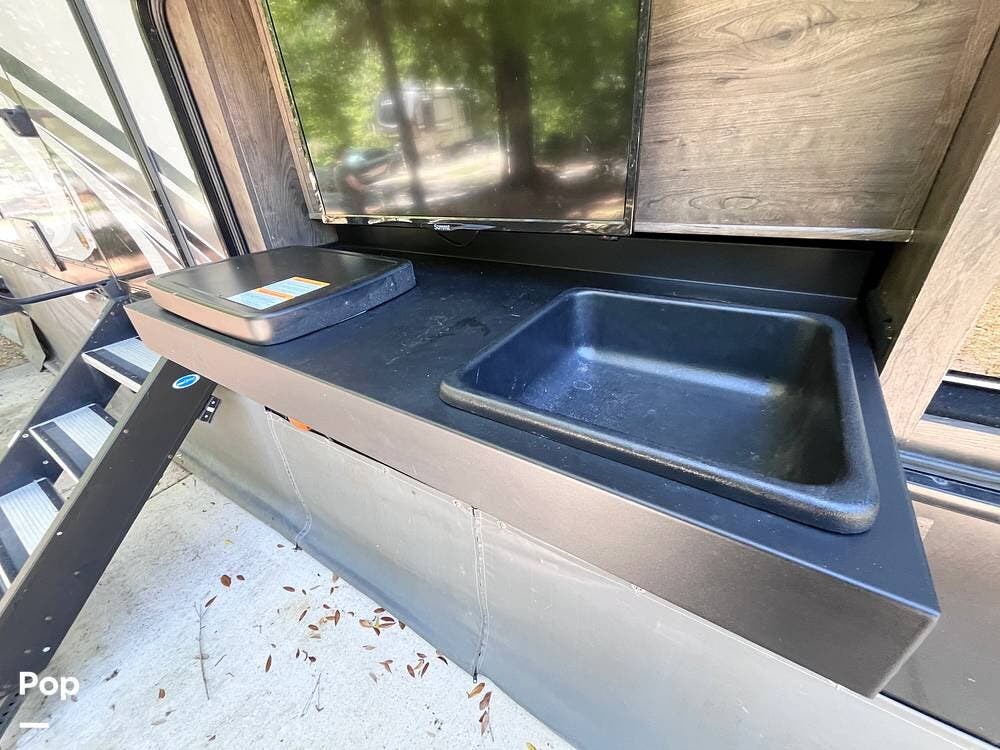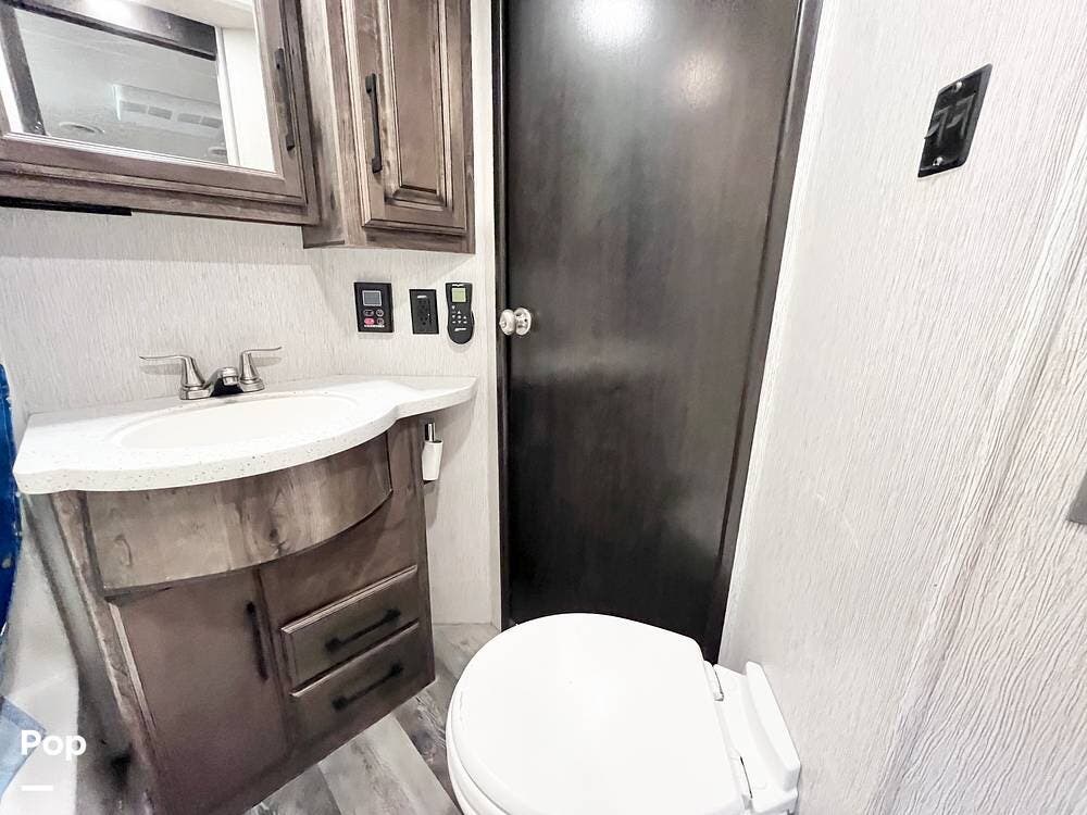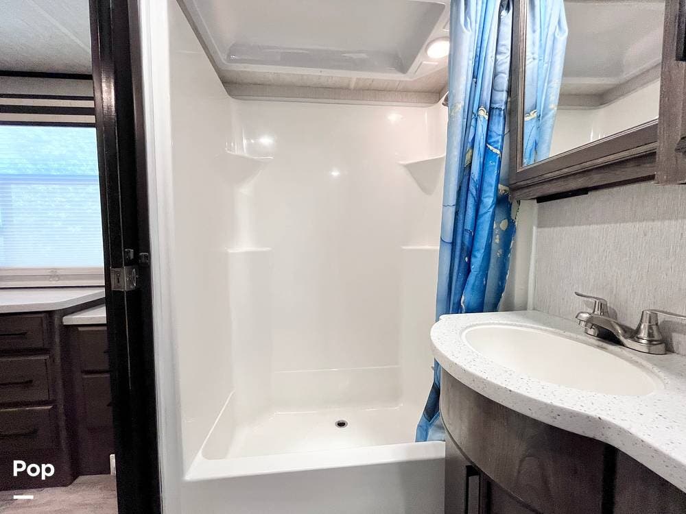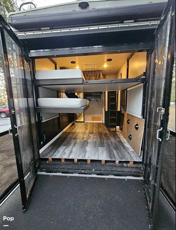Bring your toys and load up the 13' garage. The garage space converts to sleep 4 and opens up to double as a patio. This one includes the patio surround, patio doors, a TV, and its own sound system. The 2nd bathroom in the garage has a recently-replaced toilet, the sink was removed for storage (water lines remain).