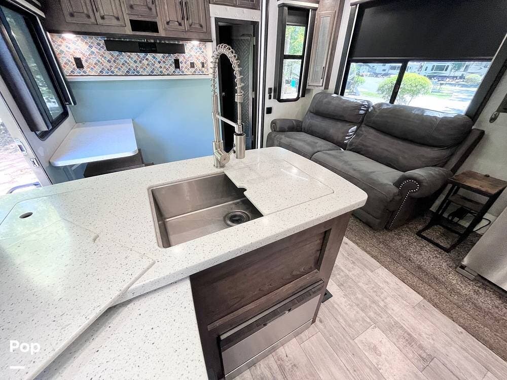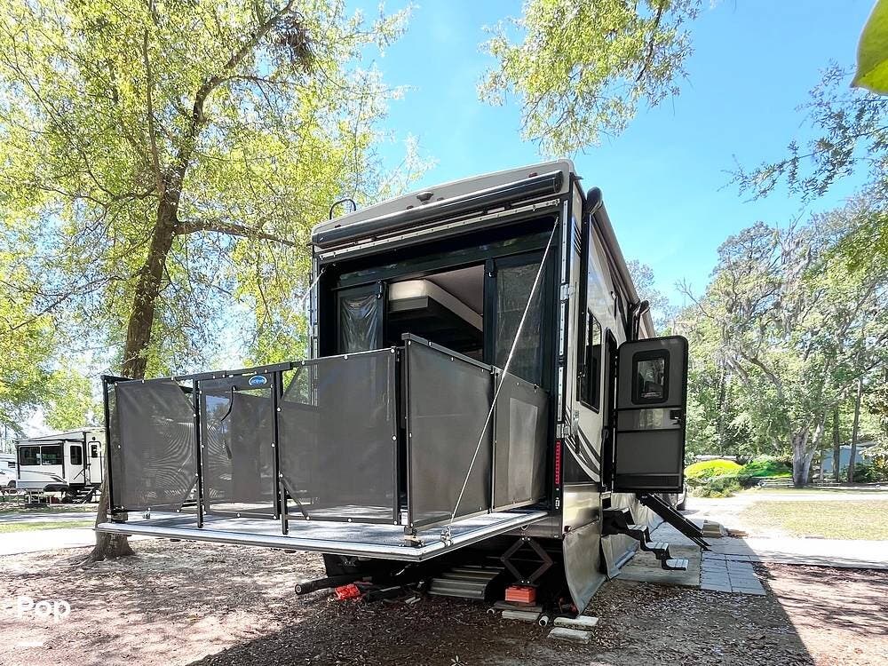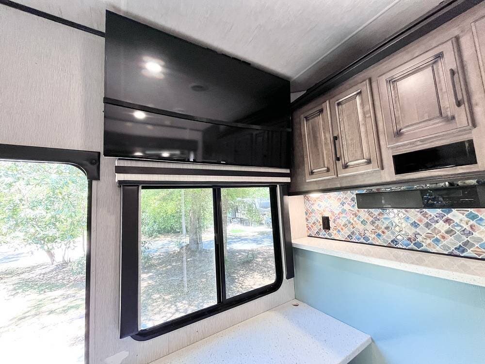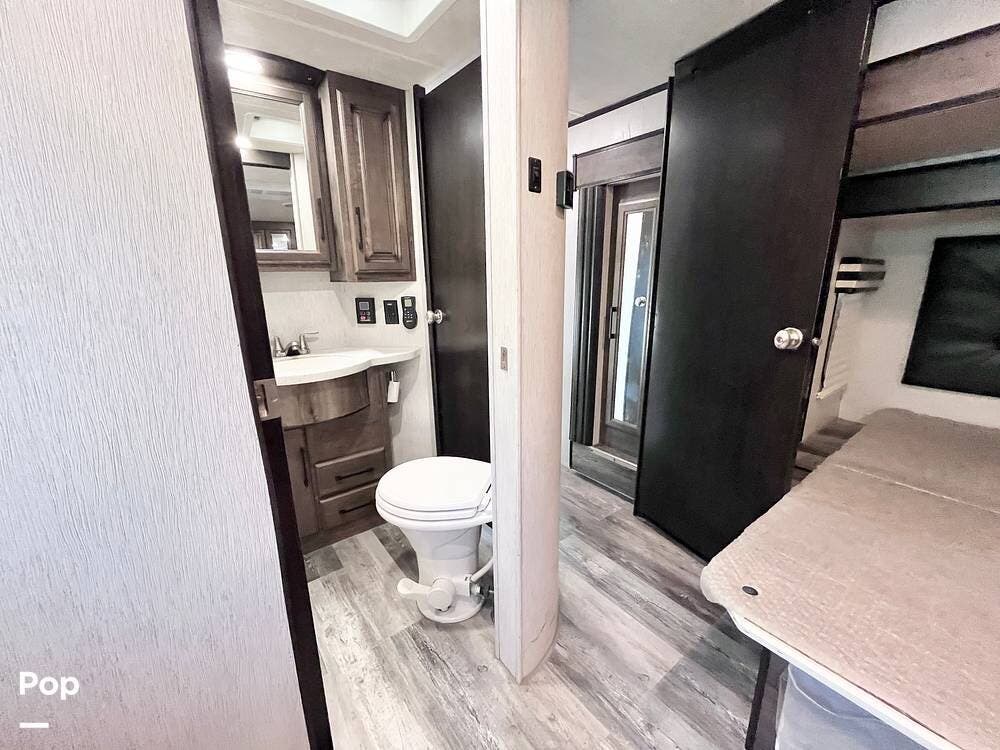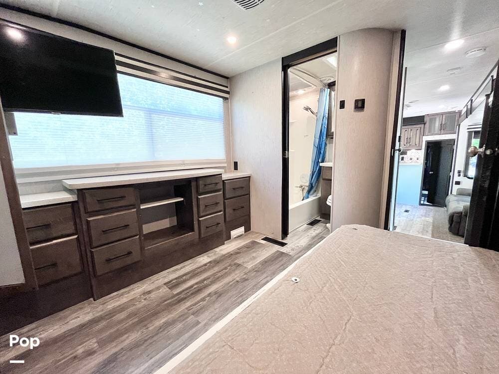 Bring your toys and load up the 13' garage. The garage space converts to sleep 4 and opens up to double as a patio. This one includes the patio surround, patio doors, a TV, and its own sound system. The 2nd bathroom in the garage has a recently-replaced toilet, the sink was removed for storage (water lines remain).
