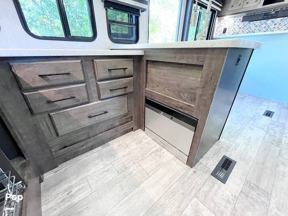 The 4007 is 43' and incorporates all the comforts of home. The family chef will love the gourmet kitchen with towering cabinets, solid-surface countertops, a large convection oven, and even a dishwasher.