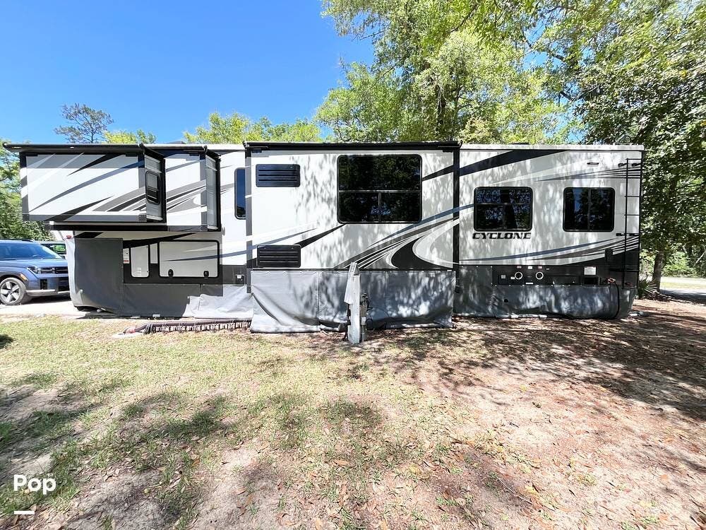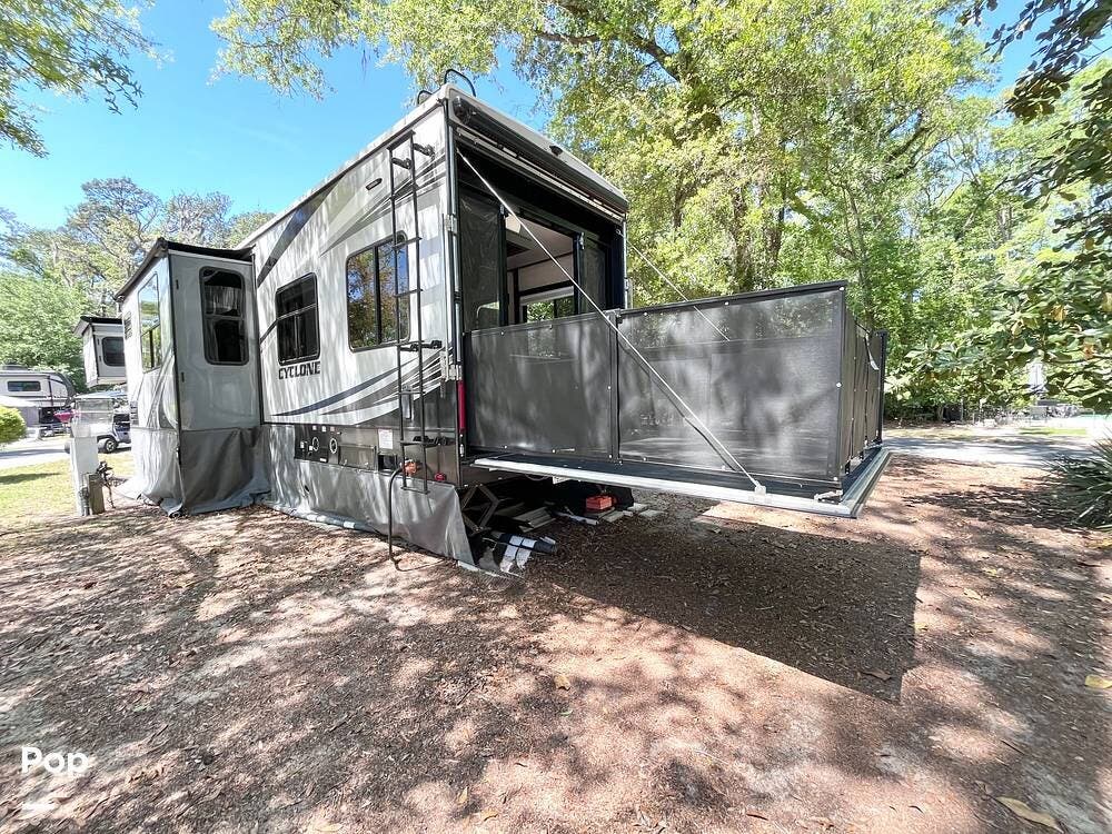 Take the Cyclone on the road with you or get ready to move right in! This Cyclone 4007 is a full-sized, well-equipped toy hauler available for sale in North Florida.