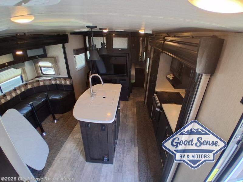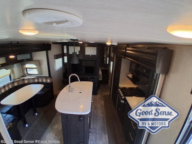 This Heartland North Trail travel trailer provides more interior space with two slides allowing plenty of room for making meals or entertaining your camping friends on a rainy night. You will enjoy the extra work space with the island, and you can eat your meals or play a game at the U-shaped dinette. At night, sleeping space can be found in the private bedroom or at the dinette.