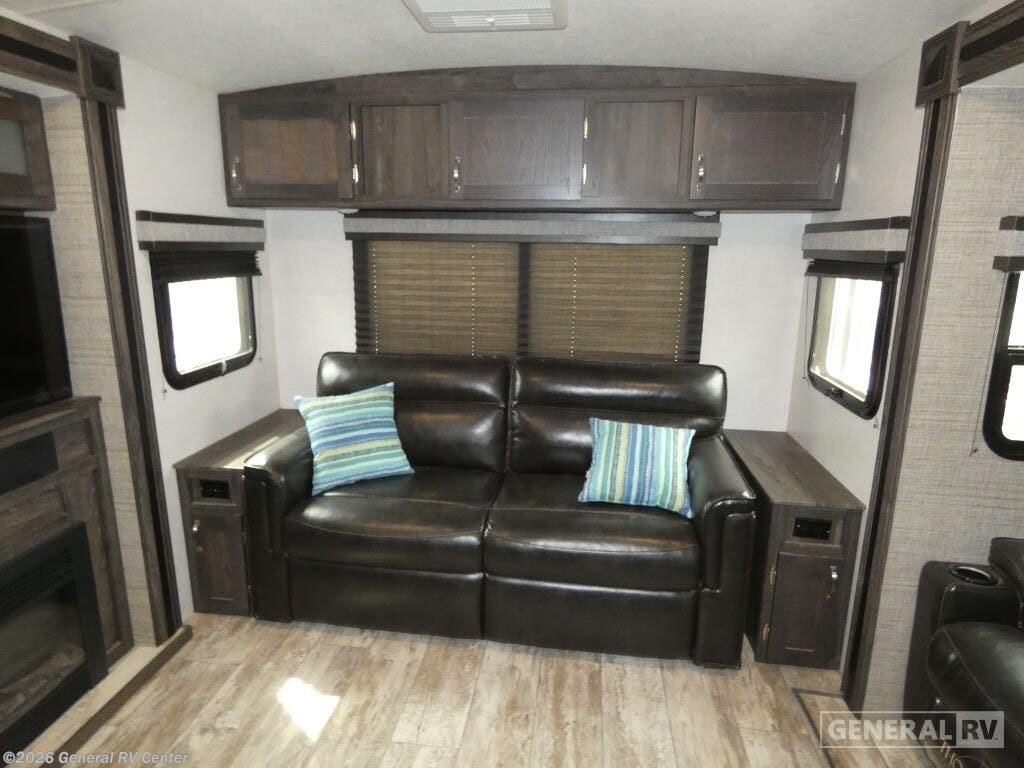 Experience the great outdoors with the 2019 Highland Ridge Open Range Light 275RLS, where comfort meets adventure. This spacious RV is designed to sleep up to eight, making it perfect for family getaways or trips with friends. The inviting interior features a queen bed and two convertible beds, ensuring everyone has a cozy place to rest. The rear living area is a haven of relaxation, with plush seating and ample space to unwind after a day of exploration. The center kitchen, equipped with a mid-size refrigerator and a three-burner cooktop, is ready for you to whip up delicious meals. You'll appreciate the thoughtful layout with its center bath, offering convenience and privacy. The powered retractable 20-foot awning extends your living space outdoors, providing shade and comfort for those sunny days. With a fresh water capacity of 51 gallons, and generous gray and black water tanks, your off-grid adventures are well-supported. The Open Range Light 275RLS combines style and functionality, ensuring your travels are both luxurious and hassle-free. For more details, visit your nearest General RV dealership.