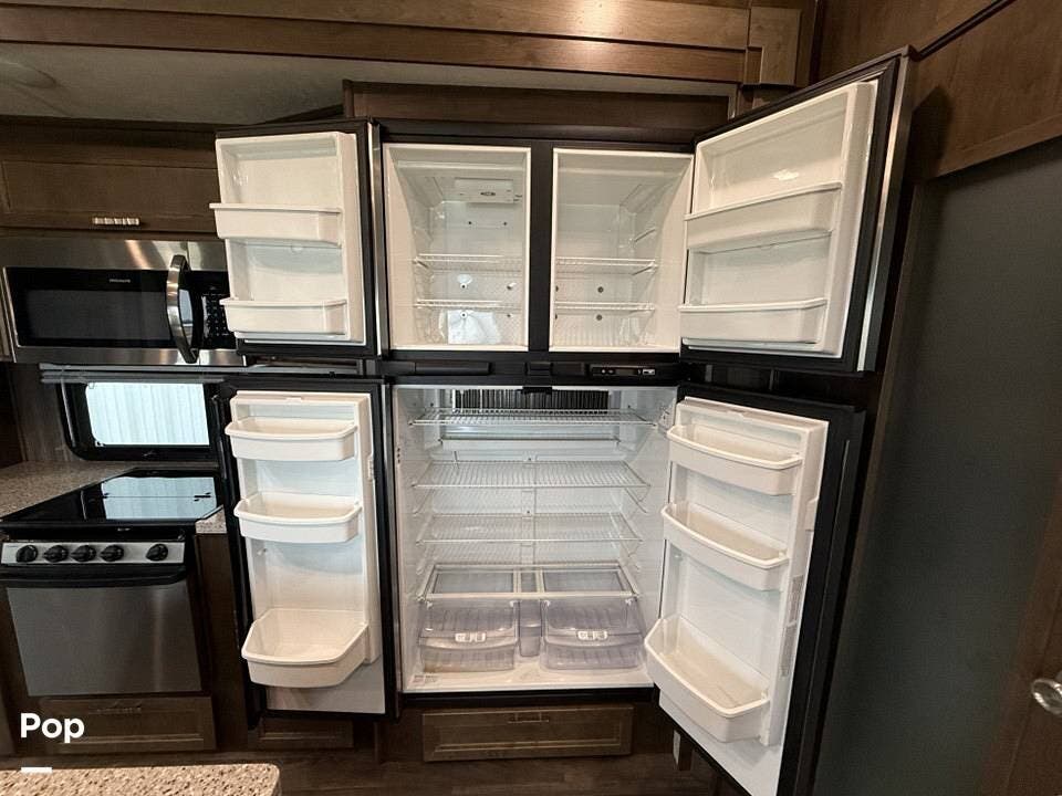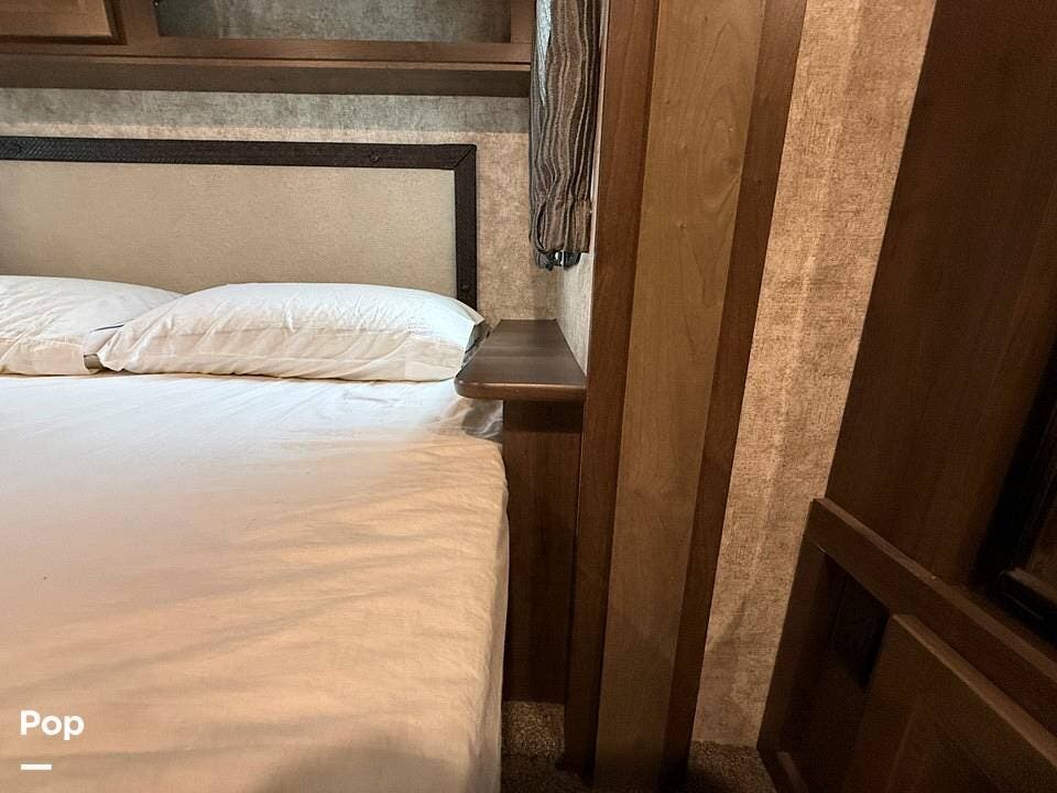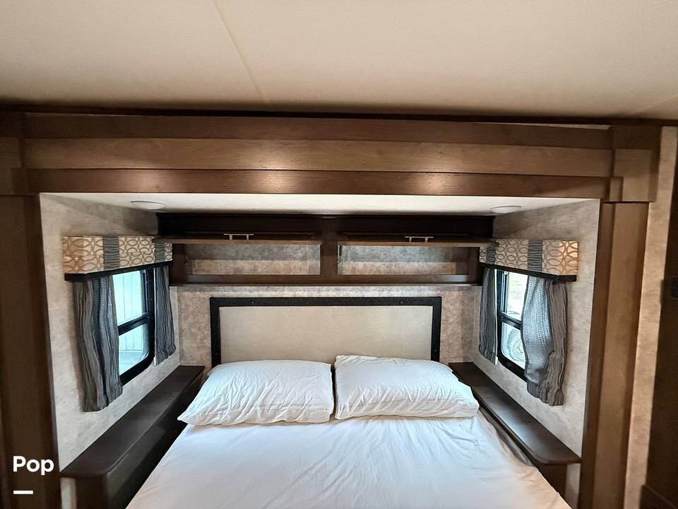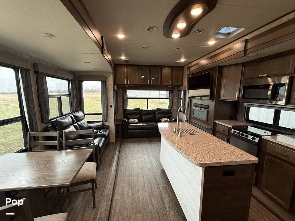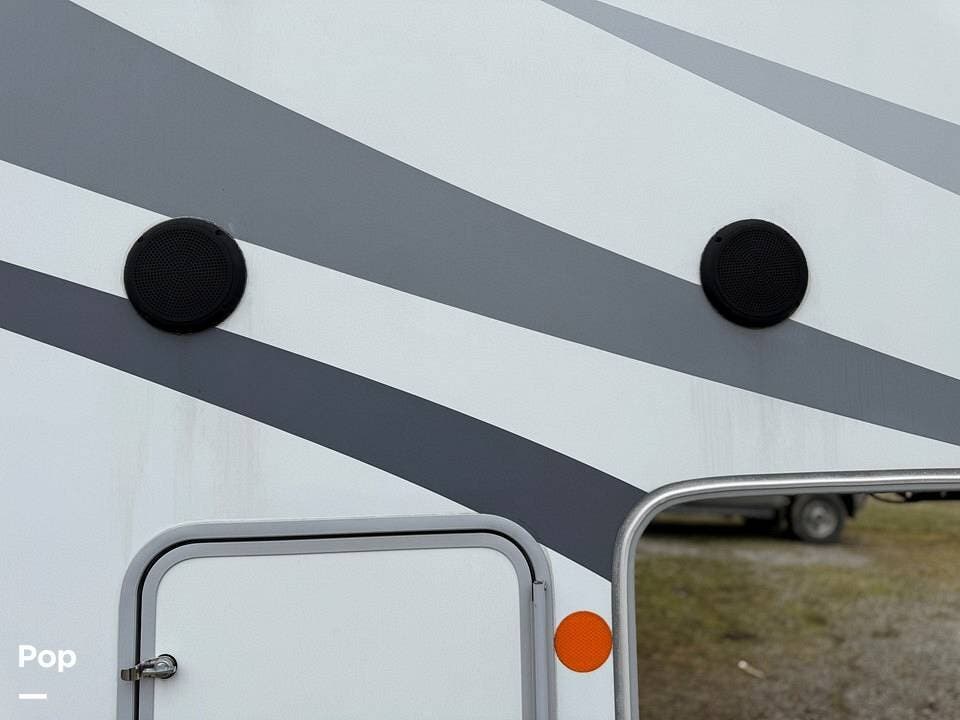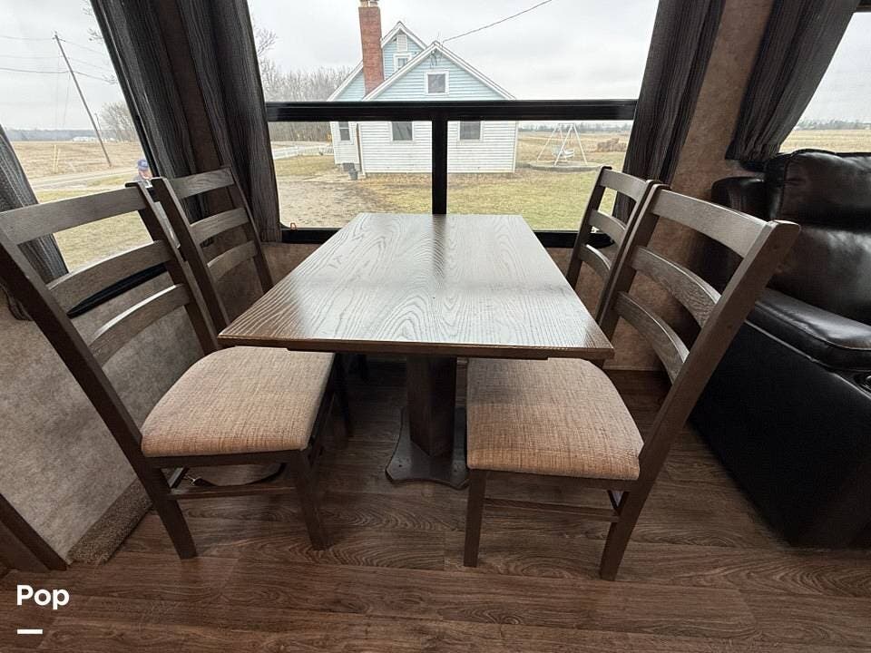 Measuring approximately 36 feet in length, this rear-living model is built with a Four Seasons Package, featuring an enclosed, heated underbelly, a high-performance furnace, and superior insulation to ensure year-round comfort regardless of the weather.