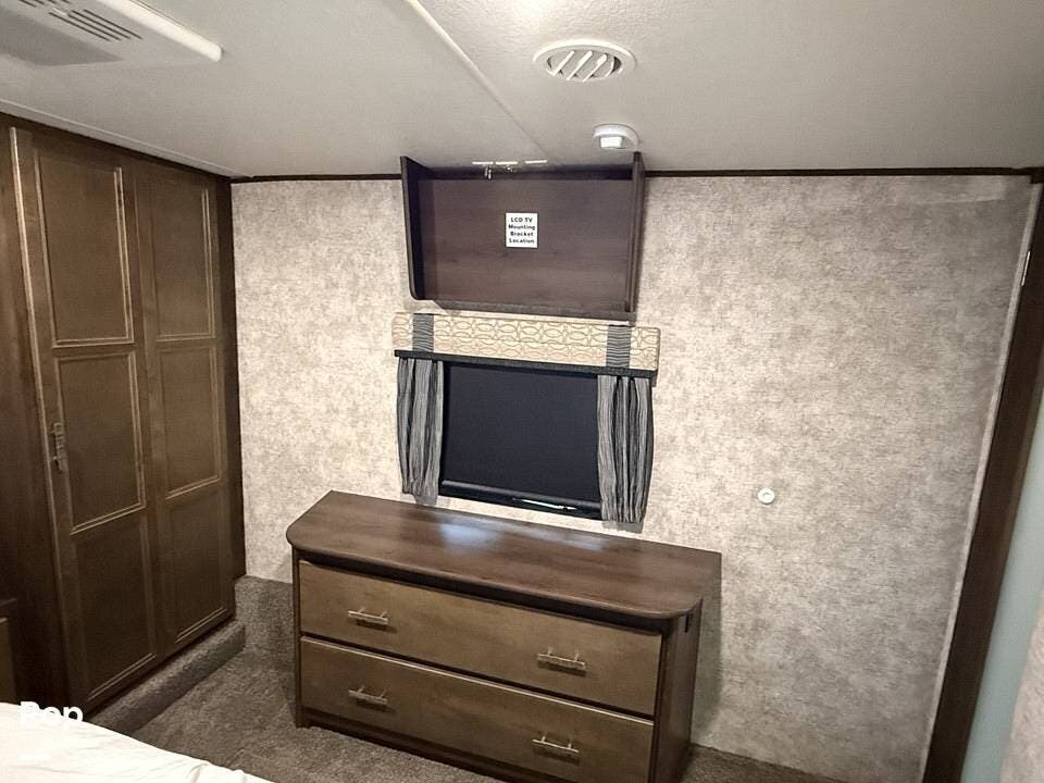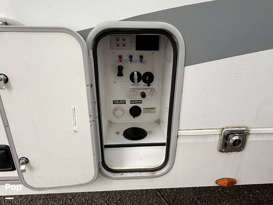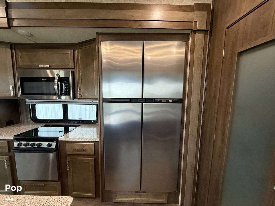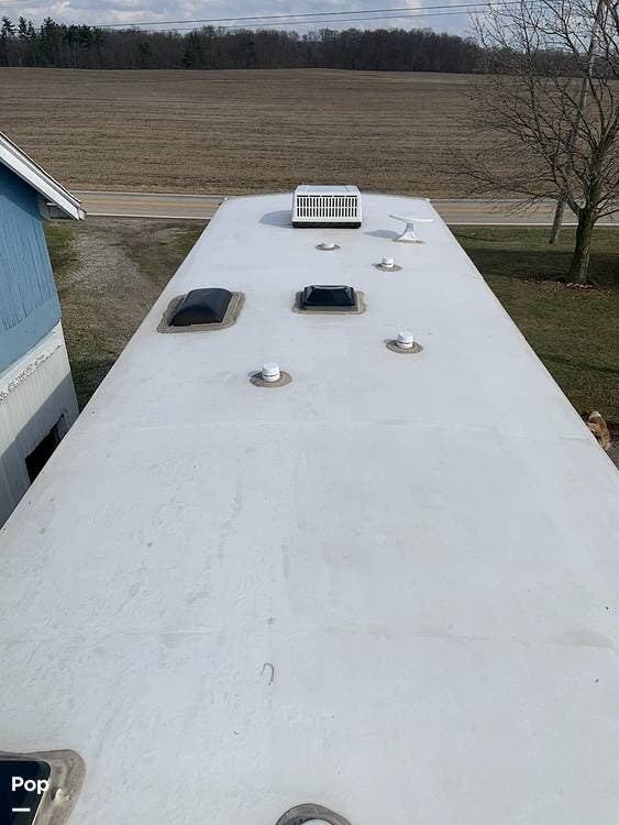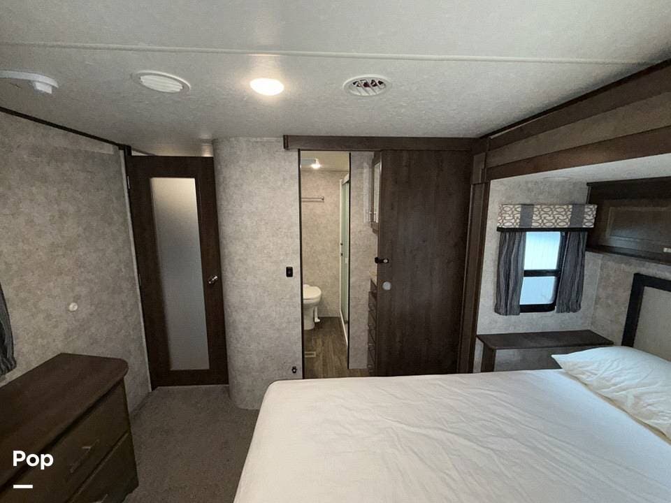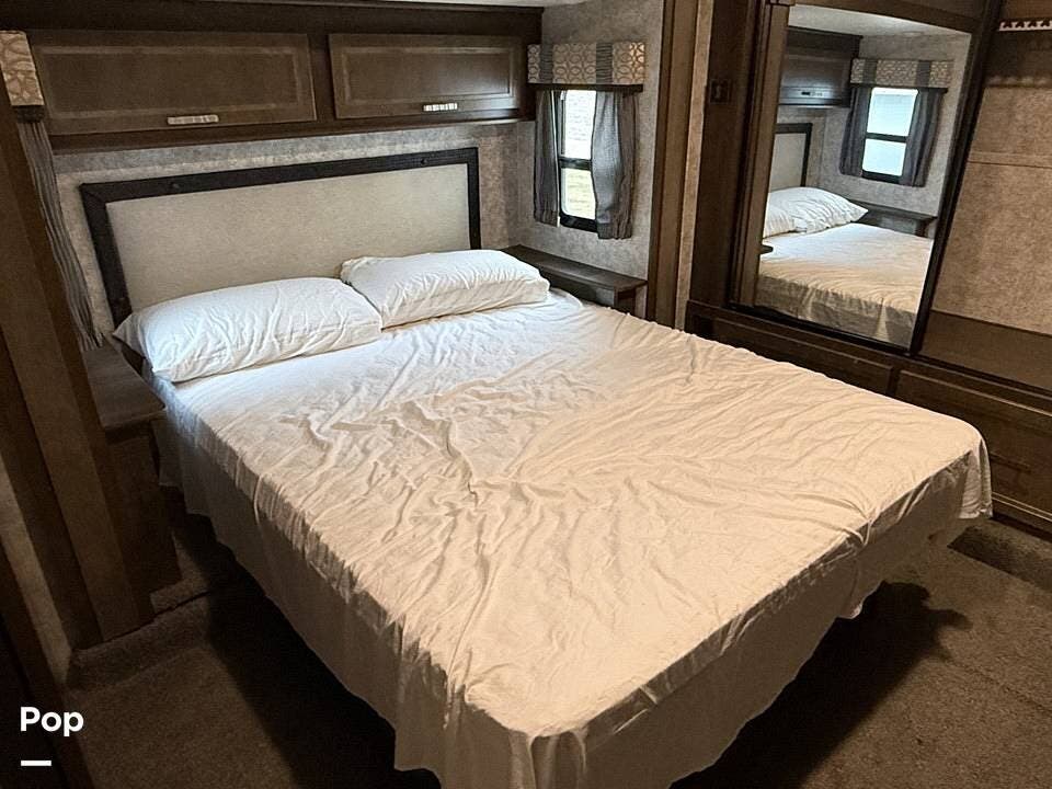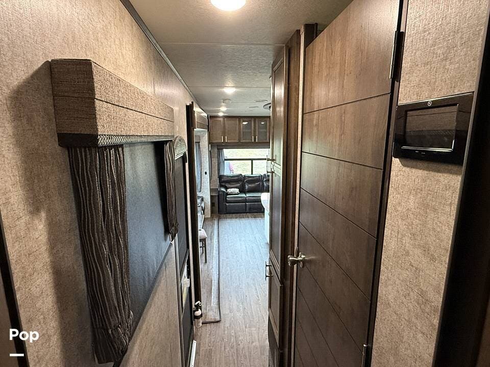 Measuring approximately 36 feet in length, this rear-living model is built with a Four Seasons Package, featuring an enclosed, heated underbelly, a high-performance furnace, and superior insulation to ensure year-round comfort regardless of the weather.