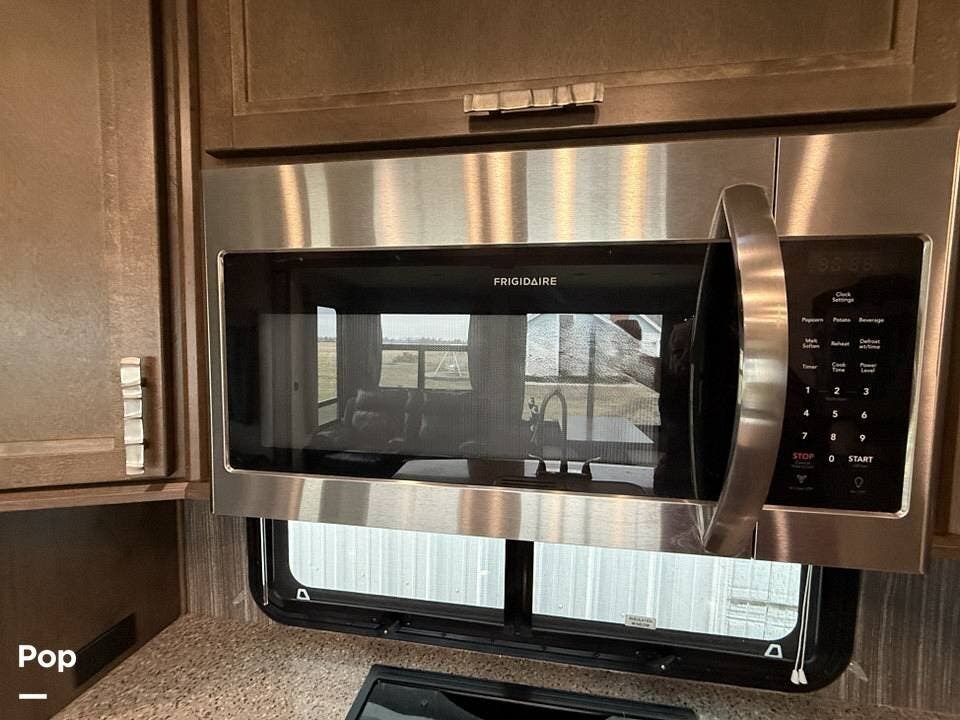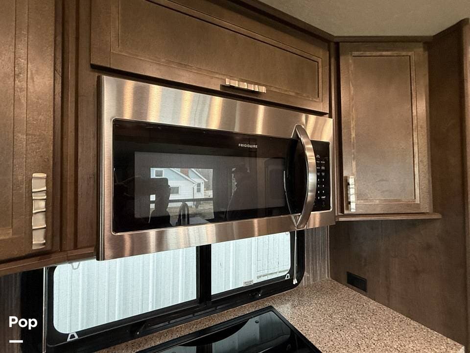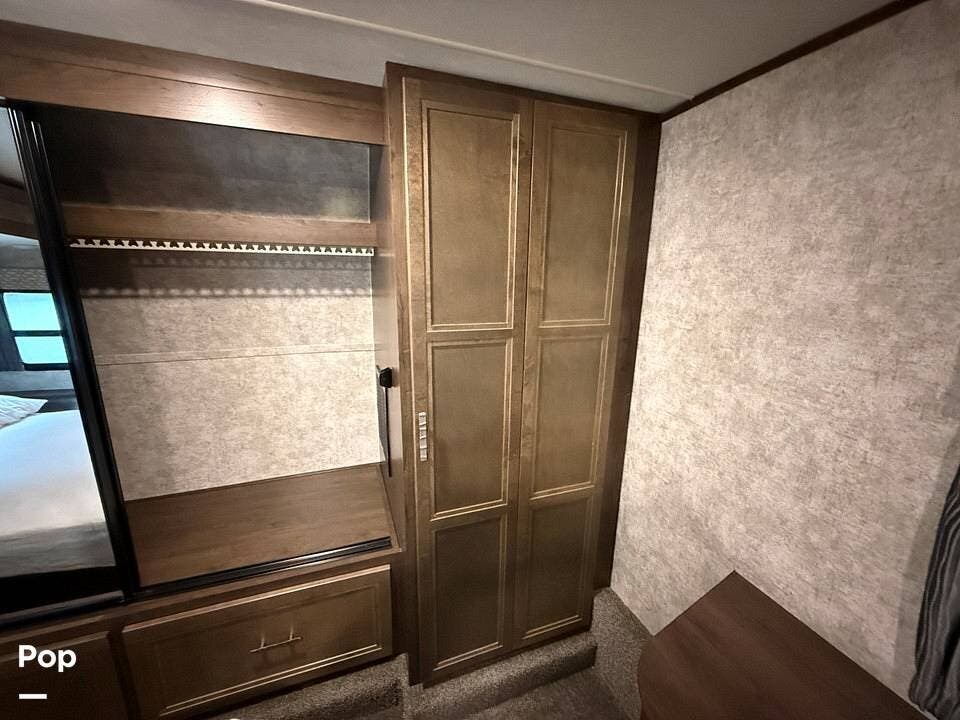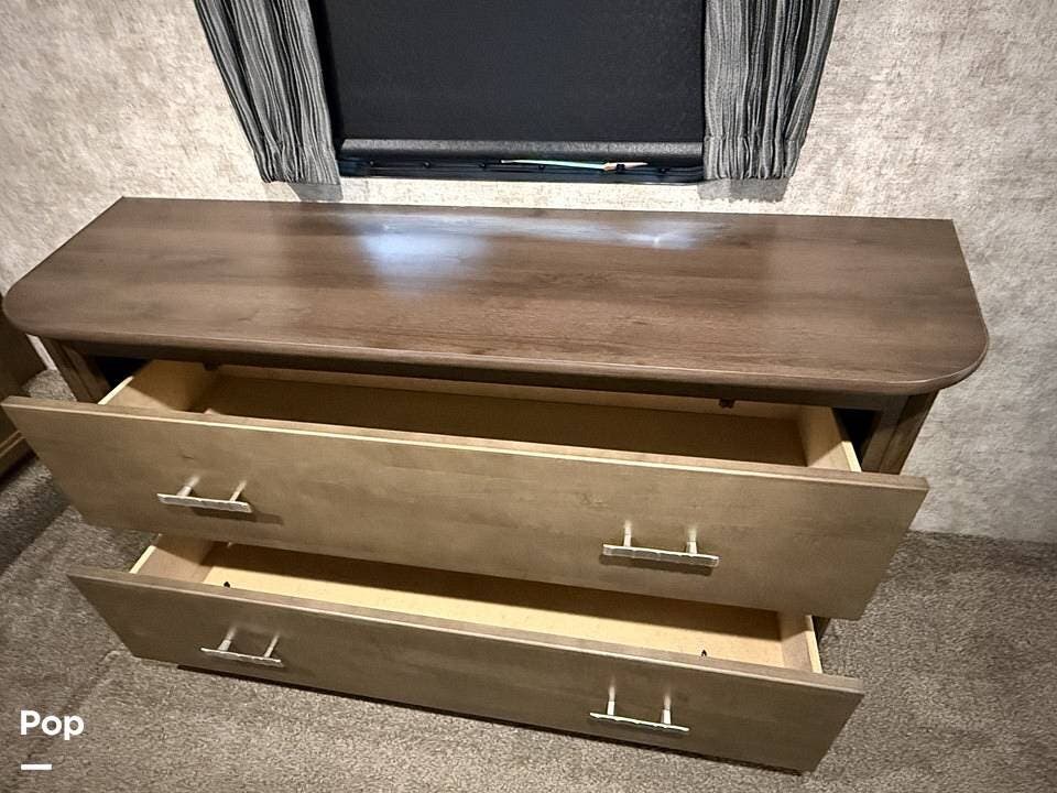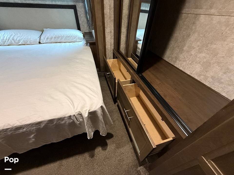 The unit boasts three spacious slide-outs, including dual slides in the main living area, maximizing interior space and creating an open, airy atmosphere that feels like a home away from home. Its 100-inch-wide body design enhances living space, making it perfect for extended stays or full-time living.