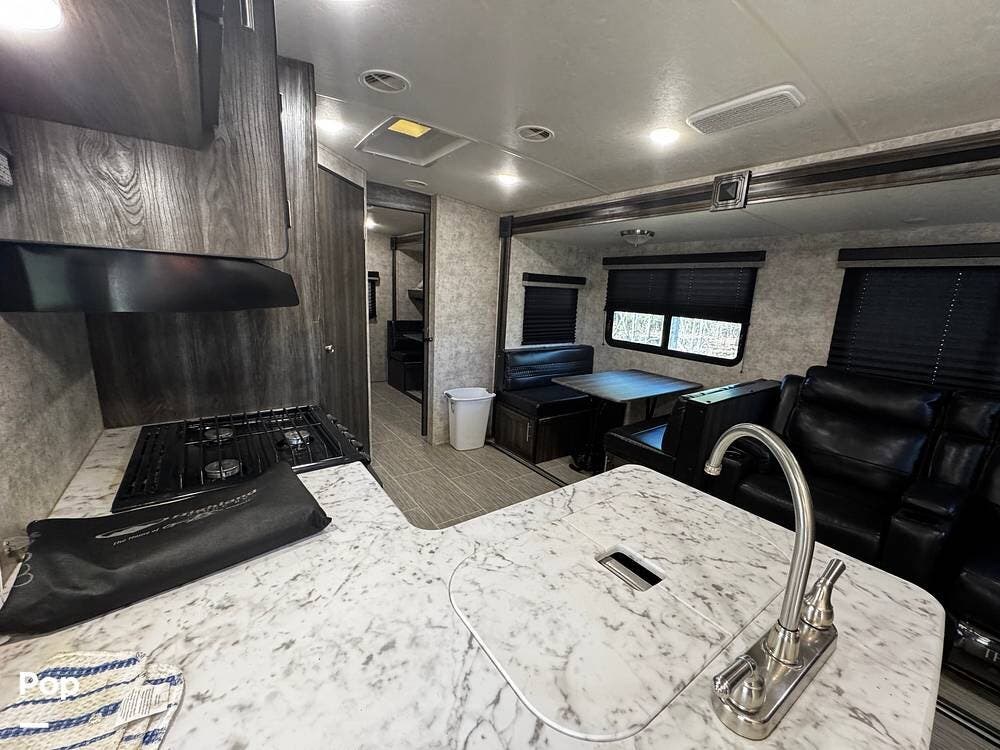You will love that this has a full bath and a half bath, each with its own entry door from the outside! It also has a massive 20-foot awning, an exterior kitchen, and a separate gas grill!