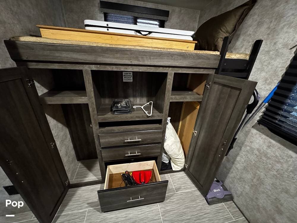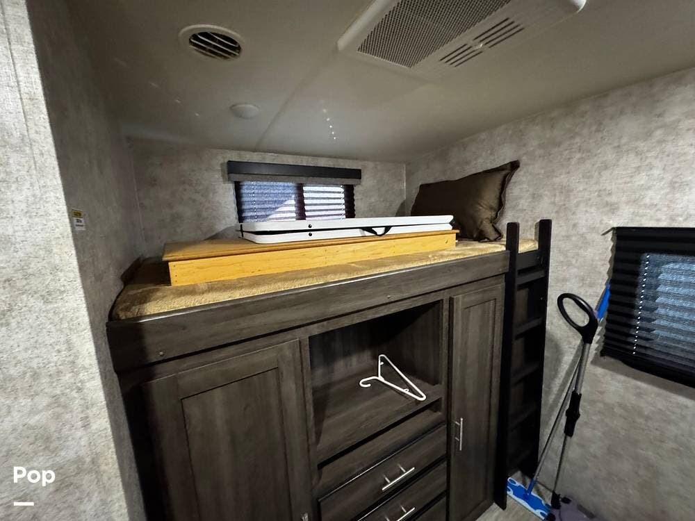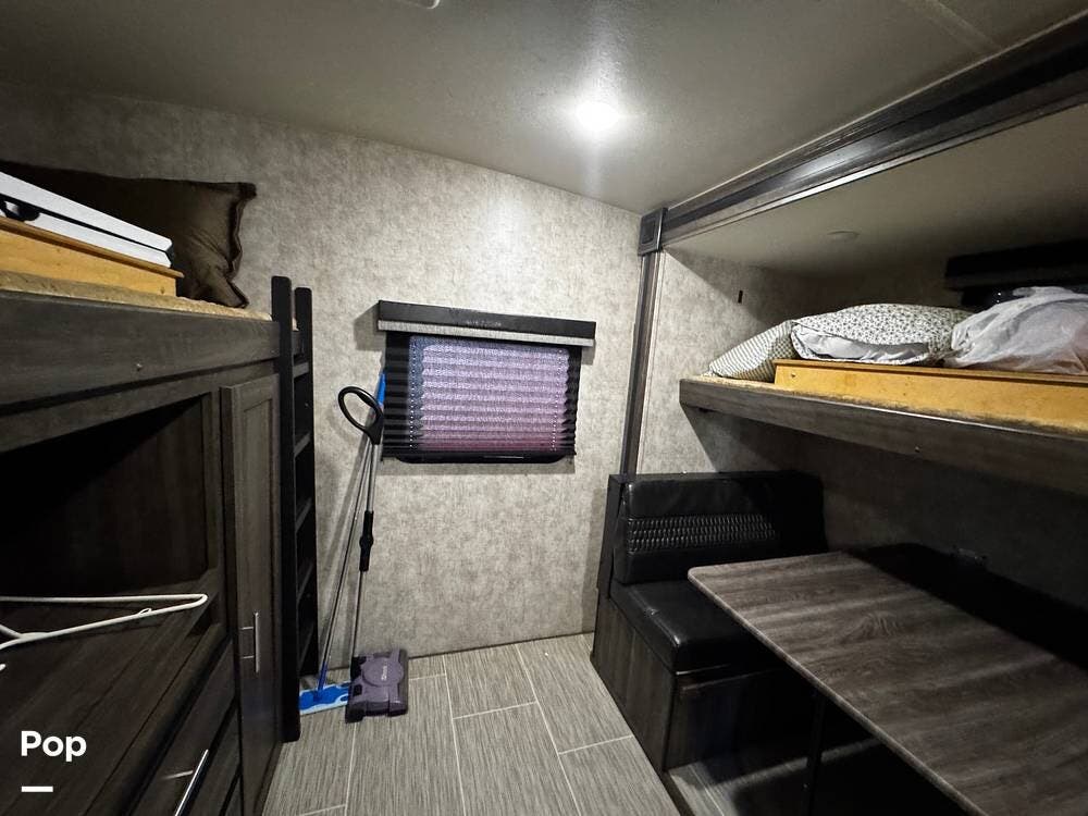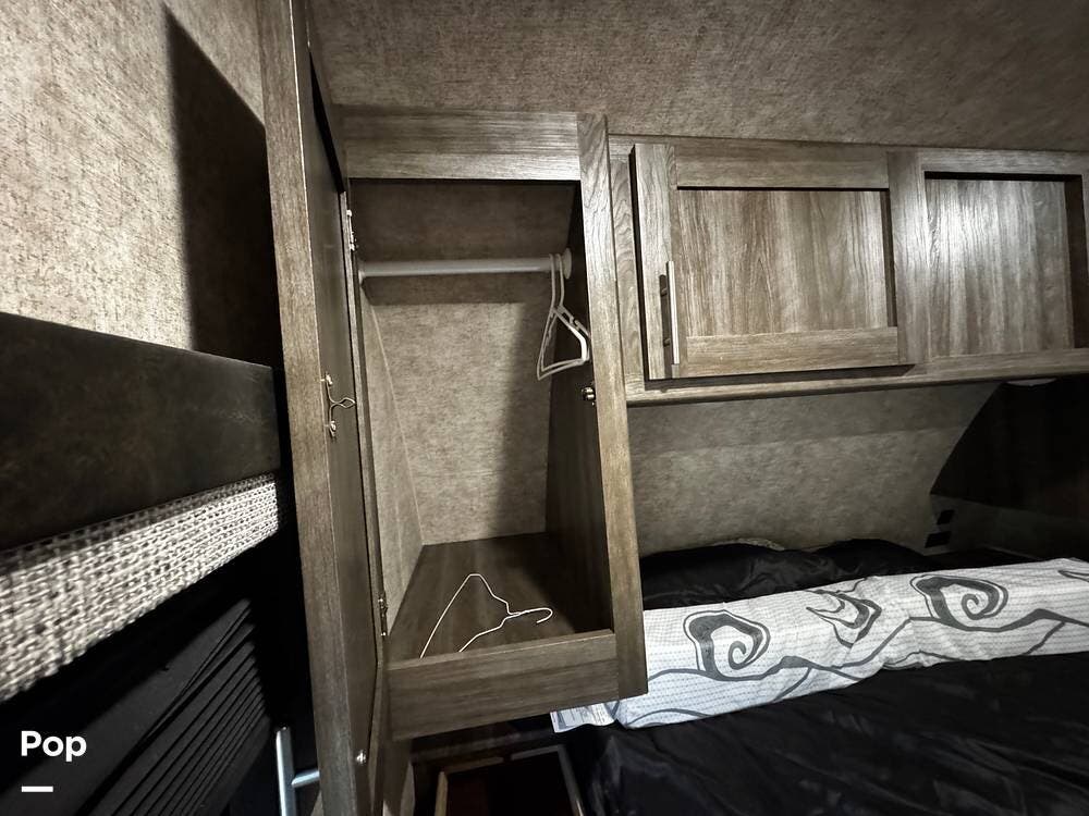 Ready to camp! Check out this travel trailer designed for families! Stored under cover!