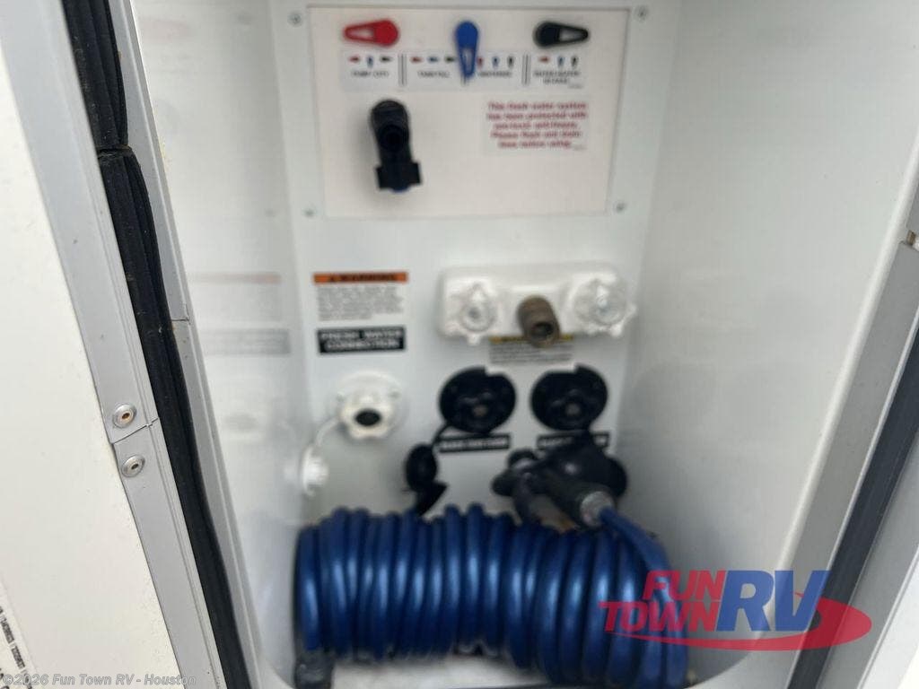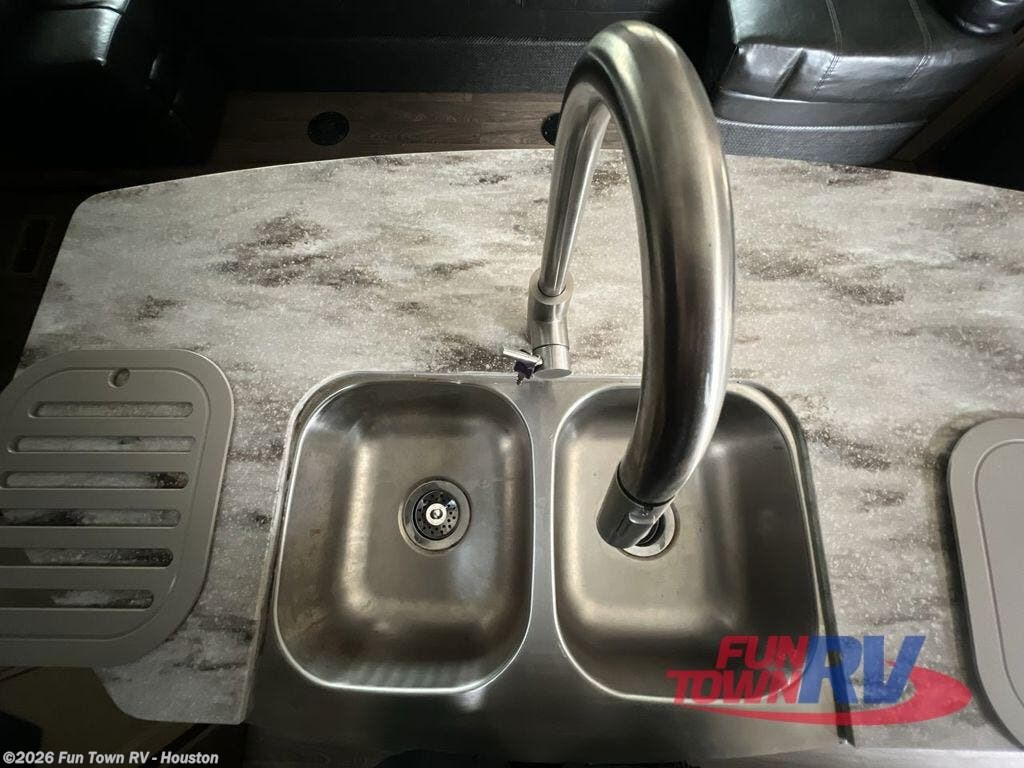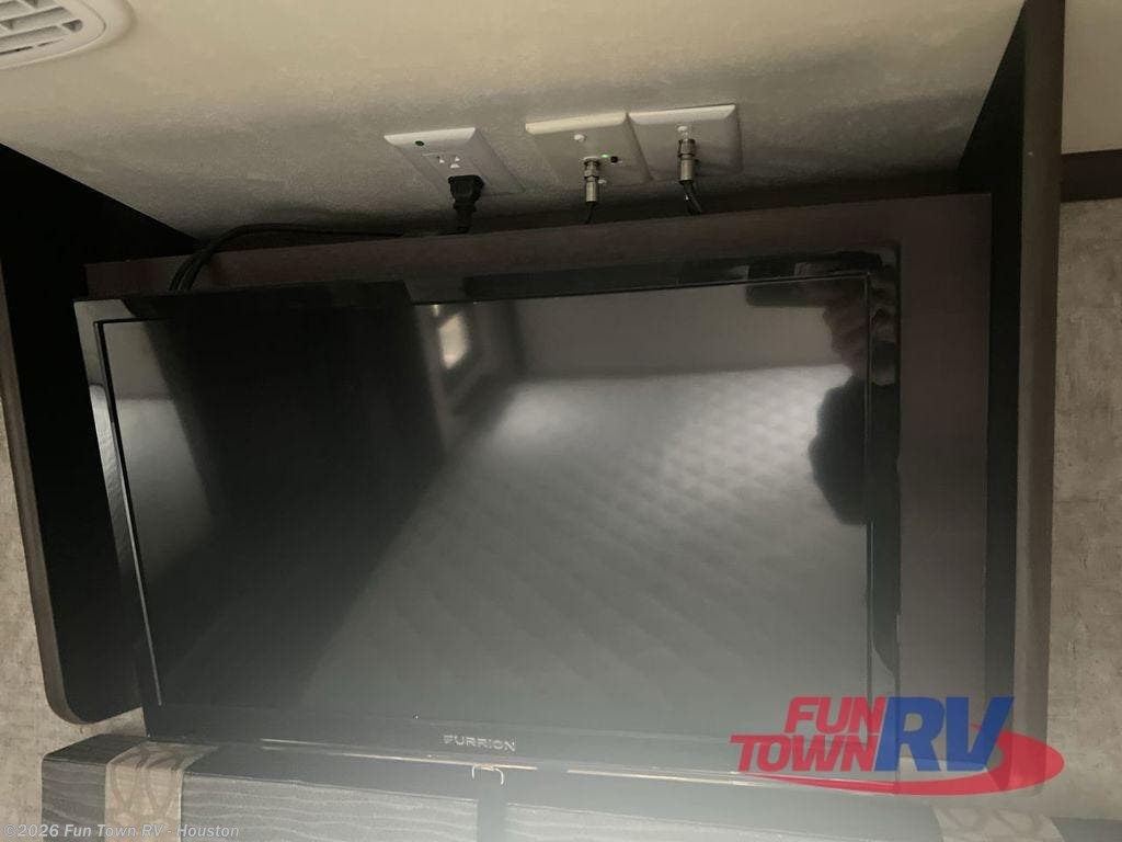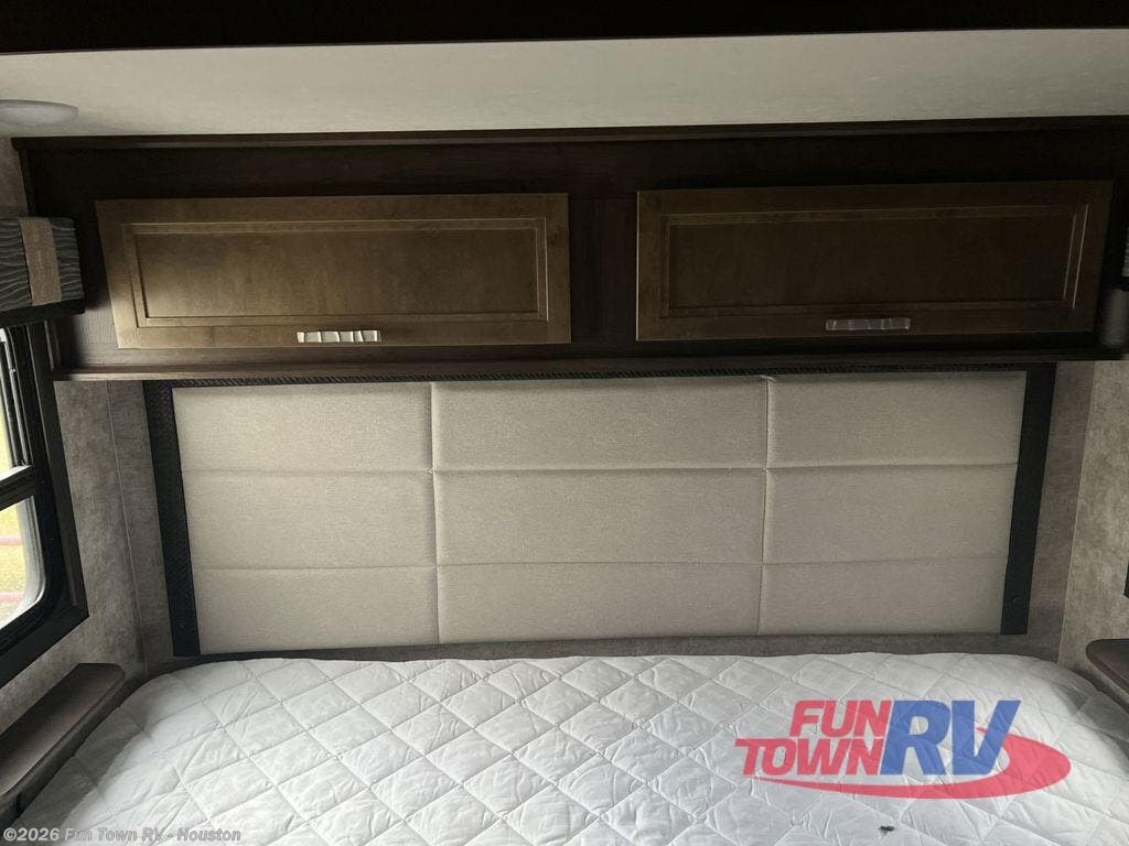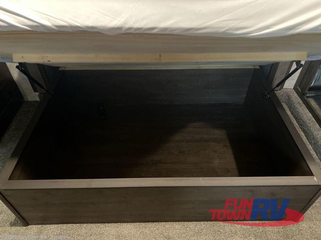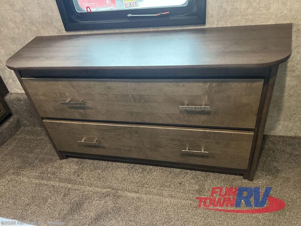 Envision all of the floor space you will enjoy thanks to the separate bunkhouse with a half bath and dual slides, and your own master suite with dual access to the full bathroom and a slide out queen bed, plus a kitchen and living area with two slide outs. Now imagine you are camping at your favorite state park with your family. You can make a meal on the outside kitchen while watching the kids run around the campsite, or cook inside will all the appliances provided including a kitchen island for convenience. You might even decide to take a break while sitting on one of the two chairs or reclining in the theater seats with heat and massage features. From five total slides, two exterior entry doors, and loads of storage, you will lack nothing in this fifth wheel!