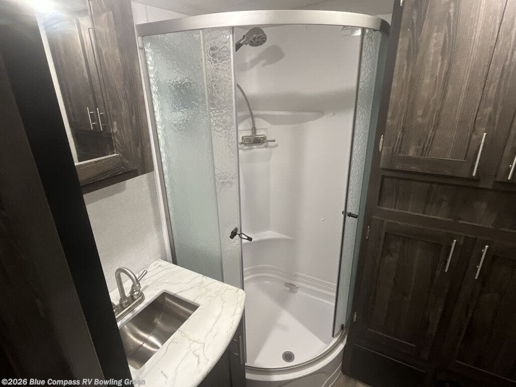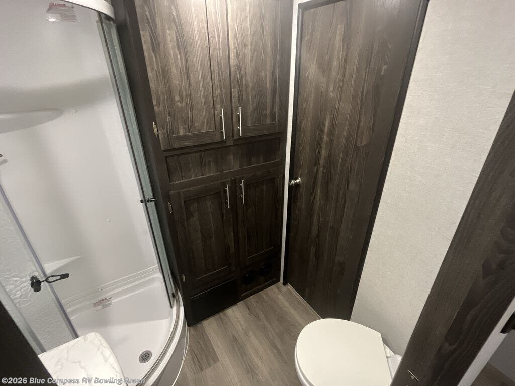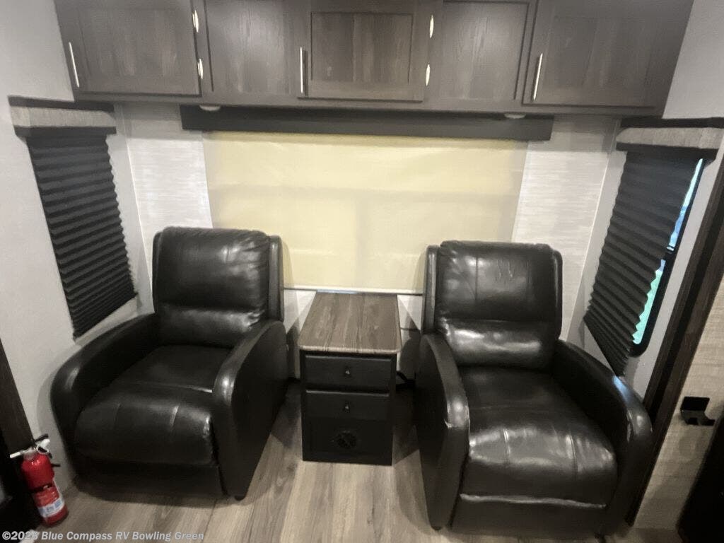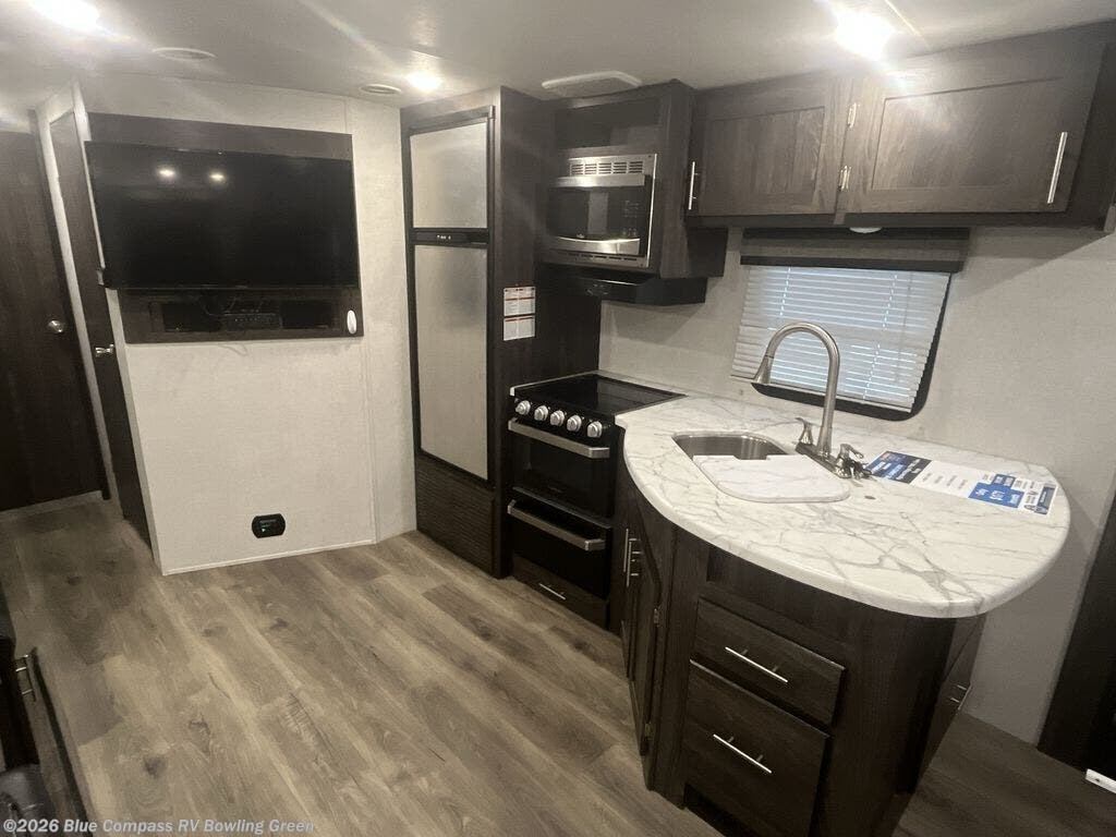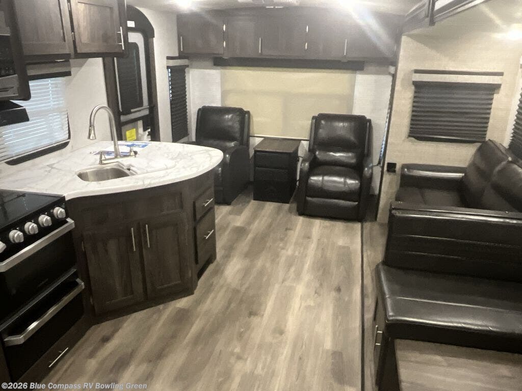 Have you been thinking about purchasing an RV for you and your favorite person? This travel trailer is the perfect floorplan for a couple or a family of five. From the stainless steel appliances and kitchen island to the large sofa and theater seats, you will have room for plenty of people to visit while you make snacks and meals. You can even watch the 39" LED TV before you retire to the front master suite with a queen bed, wardrobes and the second entrance into the bathroom. You can stop thinking about it, and start enjoying the RV lifestyle.