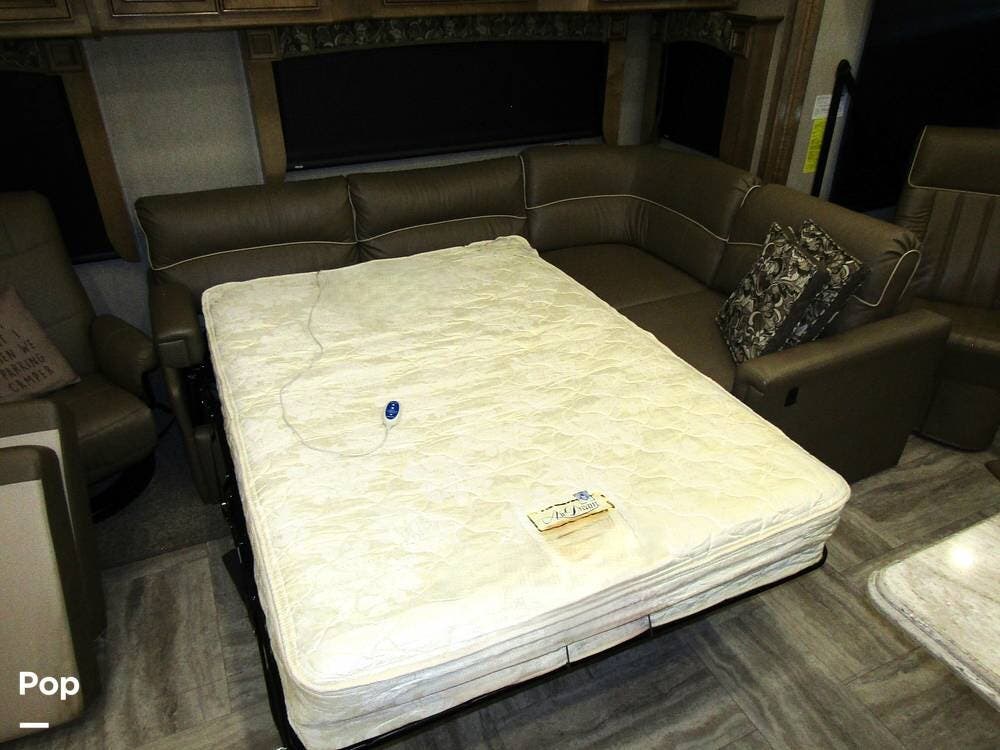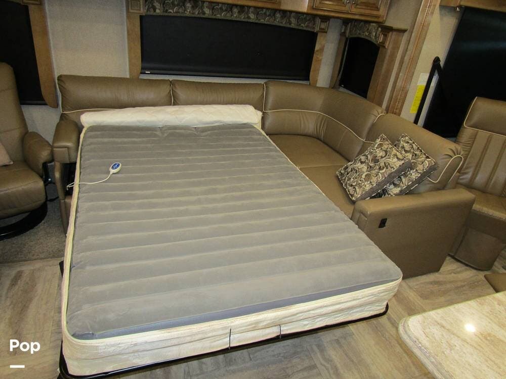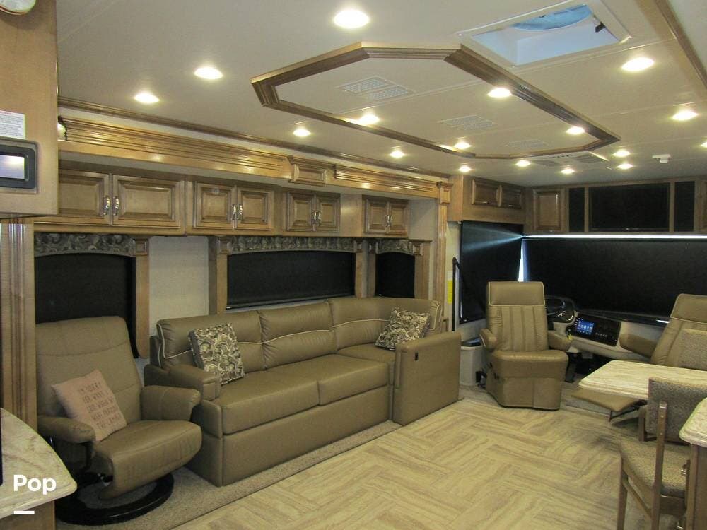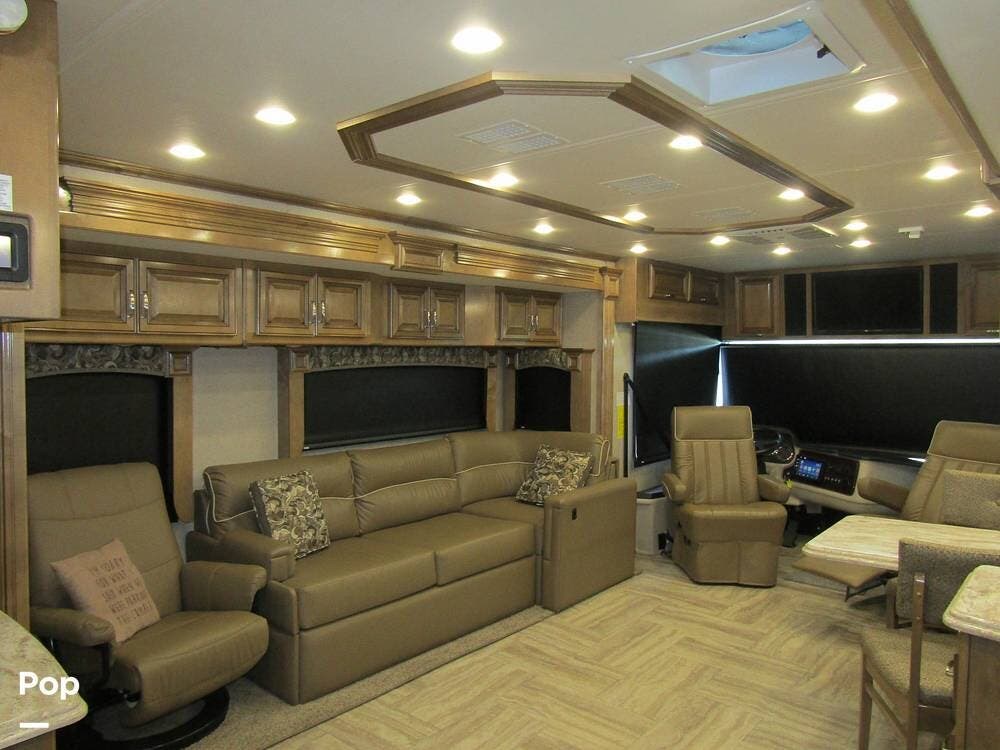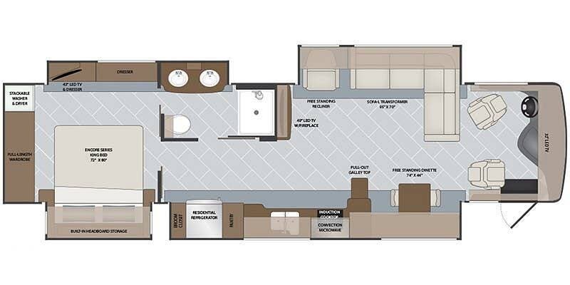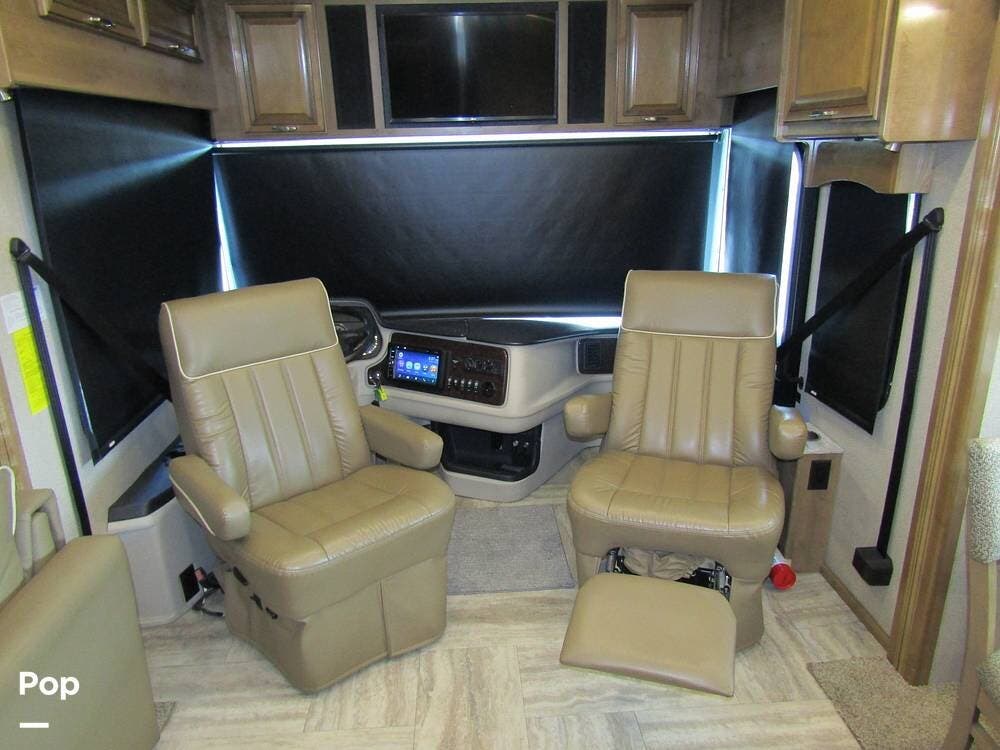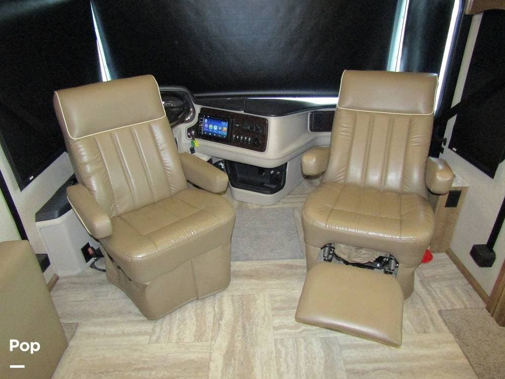 Once you're on board, you'll see how comfortably and ergonomically this RV was designed. Family members, as well as guests, will love the intuitive layout with its handy swivel power driver's and passenger's seat, passenger seat reclining feature, a Euro-style reclining swivel chair with ottoman, an extendible L-shaped living room lounger with sleeper-sofa and auto, inflate/deflate air mattress, three interior flat-panel TVs inside with a Bose sound system,