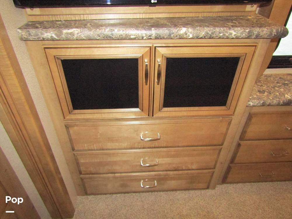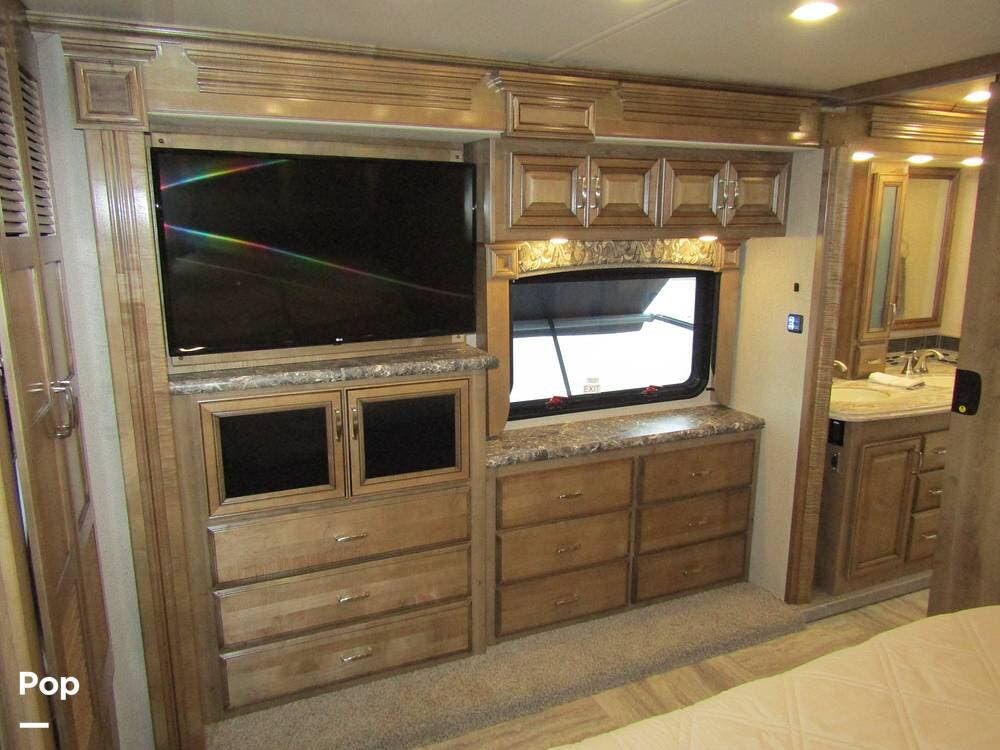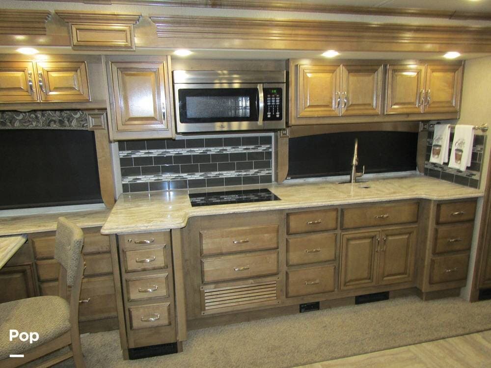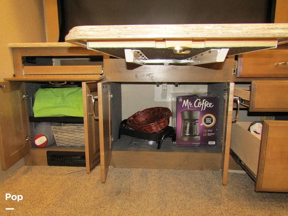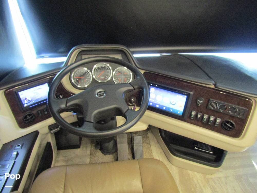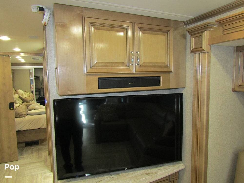 Once you're on board, you'll see how comfortably and ergonomically this RV was designed. Family members, as well as guests, will love the intuitive layout with its handy swivel power driver's and passenger's seat, passenger seat reclining feature, a Euro-style reclining swivel chair with ottoman, an extendible L-shaped living room lounger with sleeper-sofa and auto, inflate/deflate air mattress, three interior flat-panel TVs inside with a Bose sound system,
