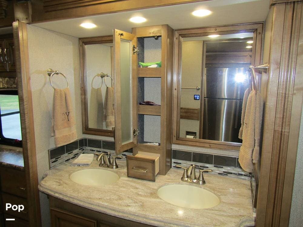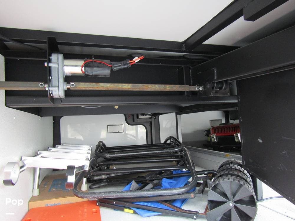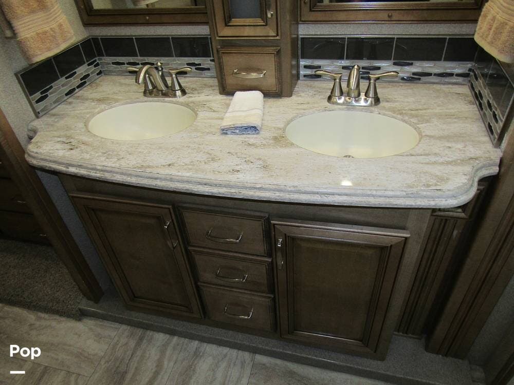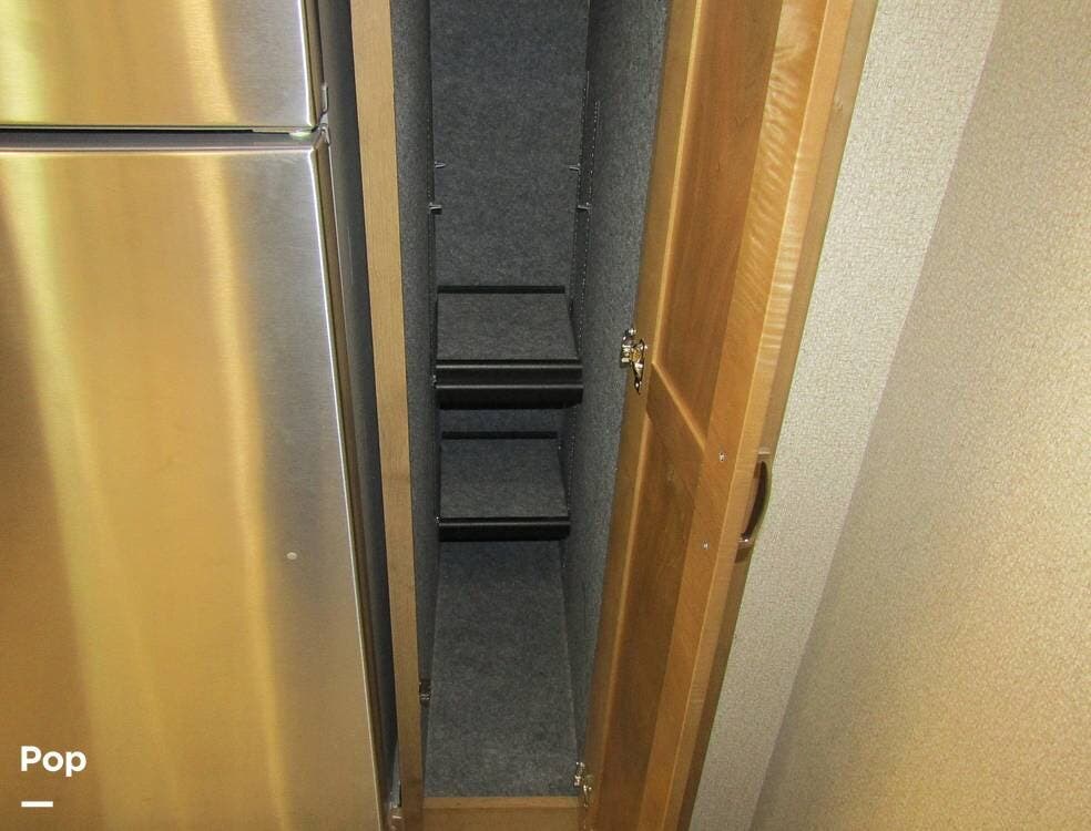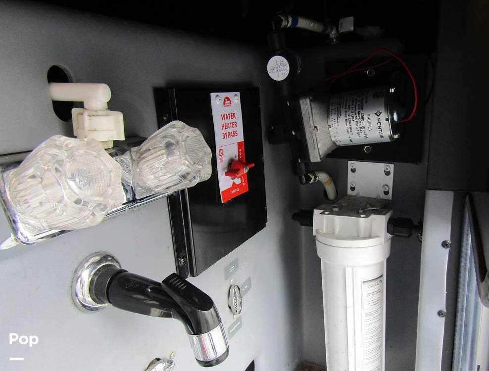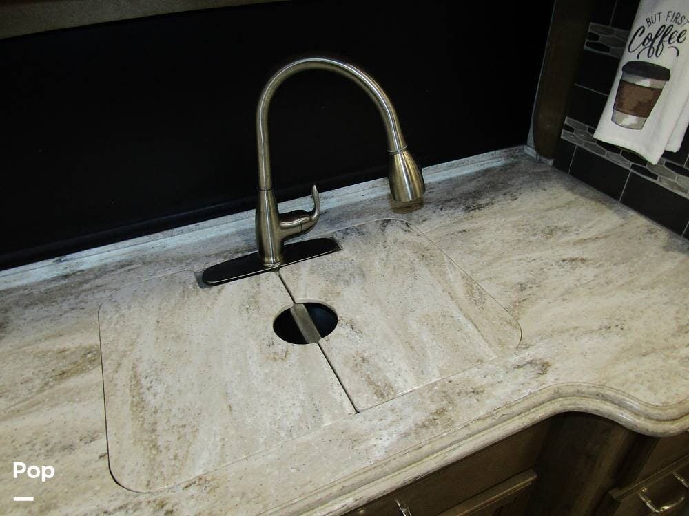 There is a filtered water system, solid countertops, a convection microwave, a residential refrigerator with an ice maker, dual A/Cs, and master sleeping quarters with a powered king-size bed and dual bathroom access!