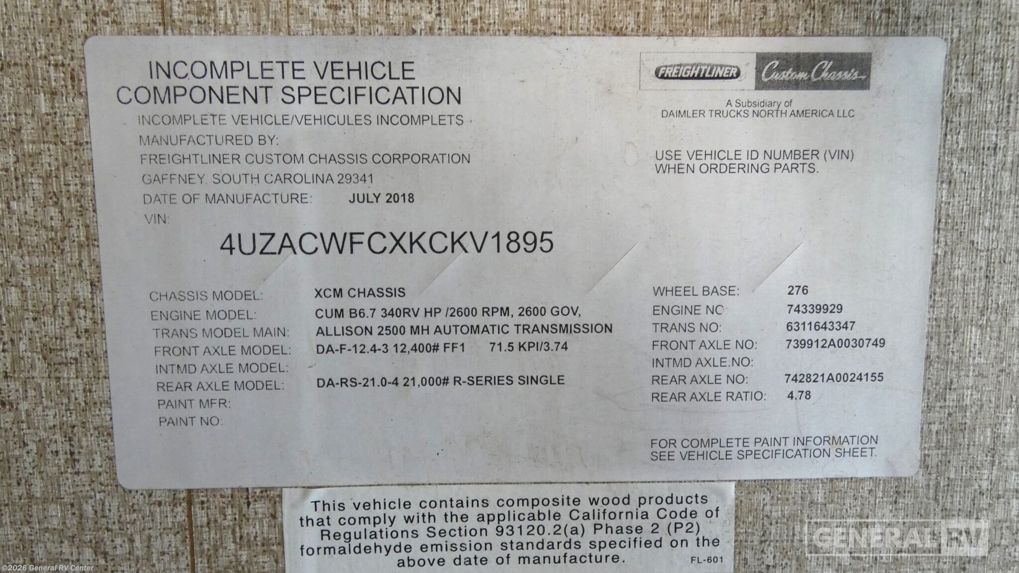 - VIN4UZACWFCXKCKV1895