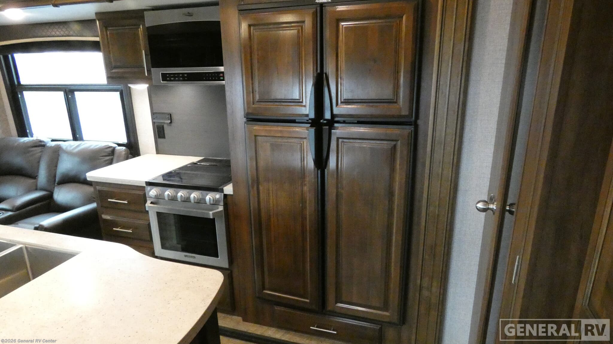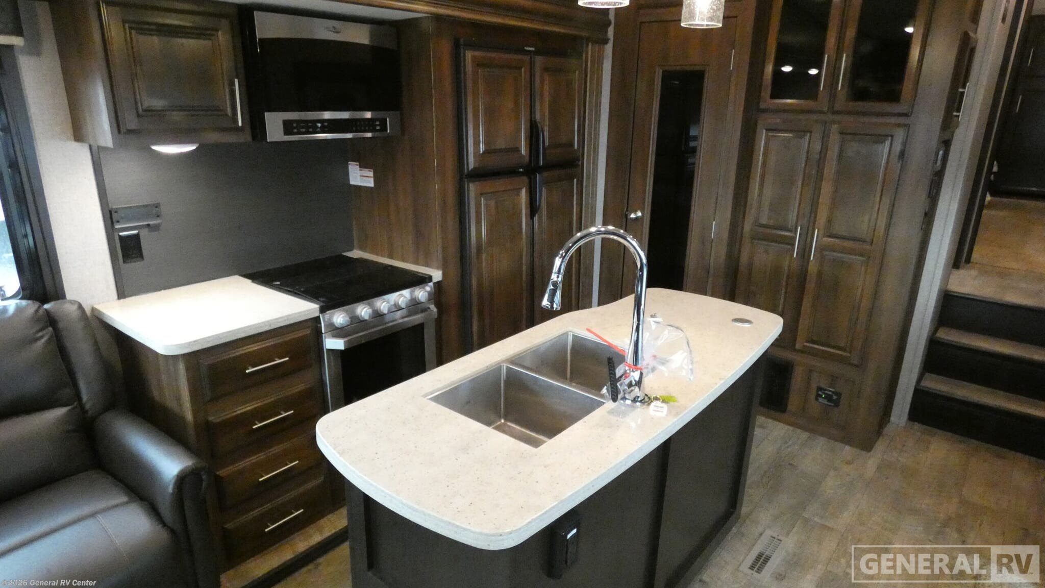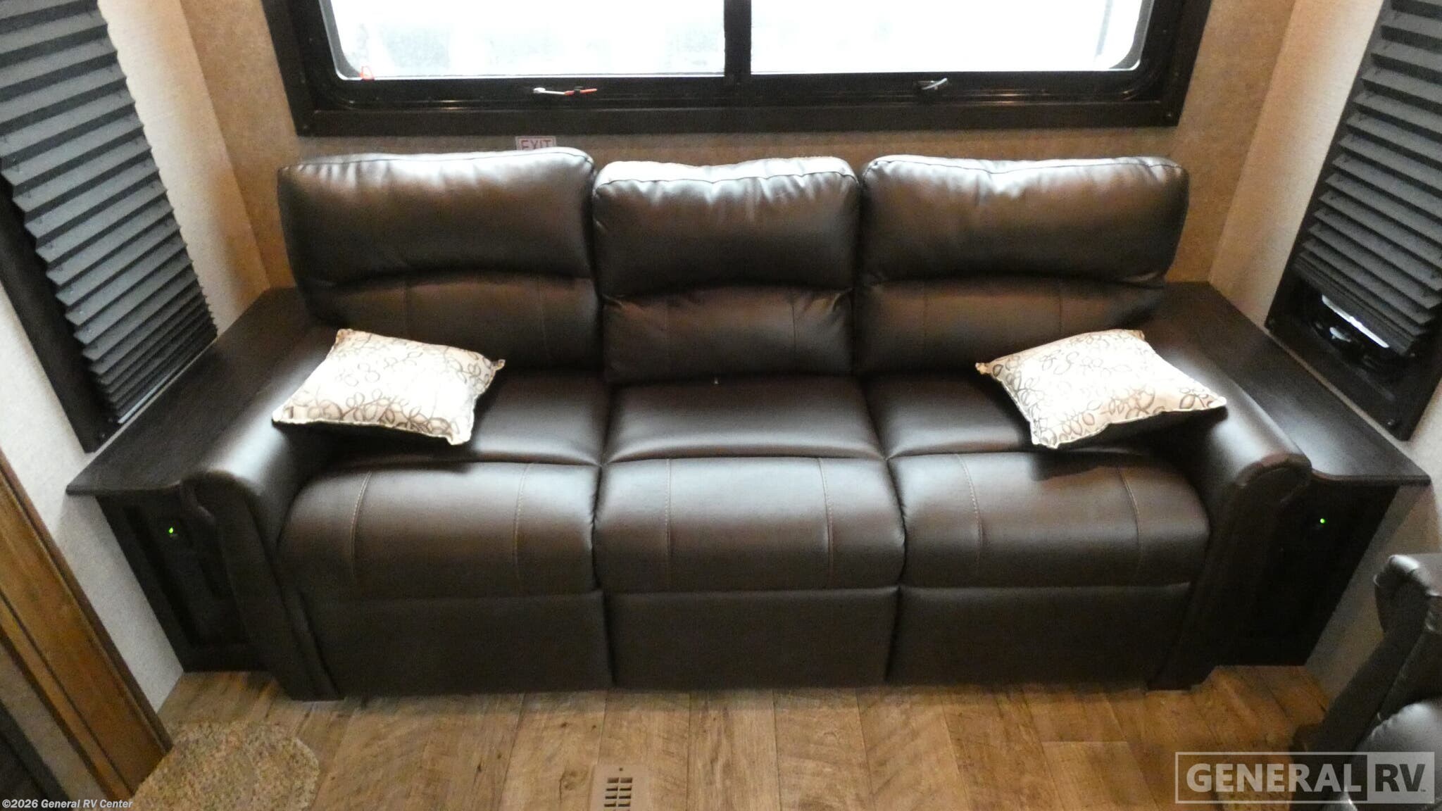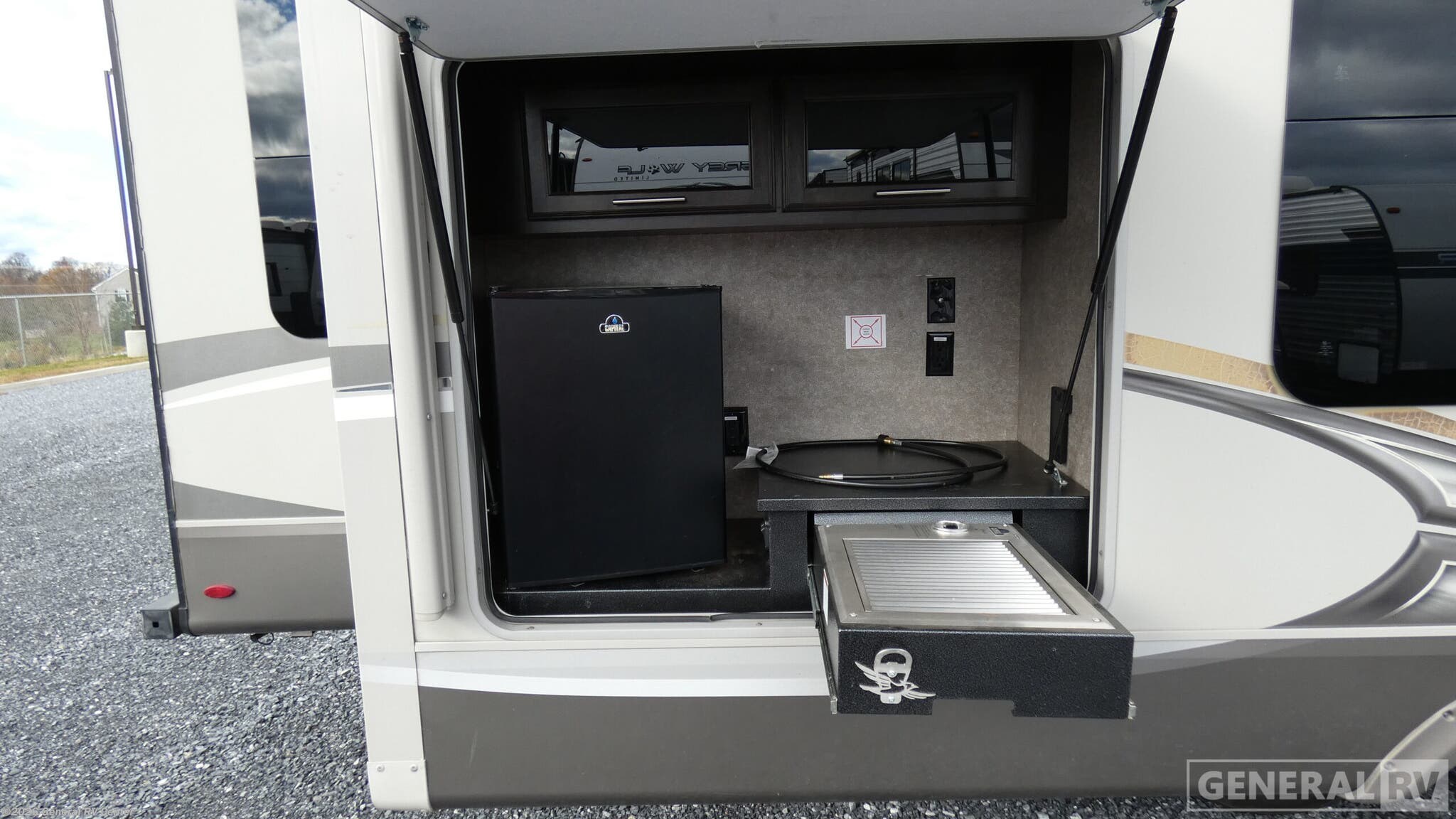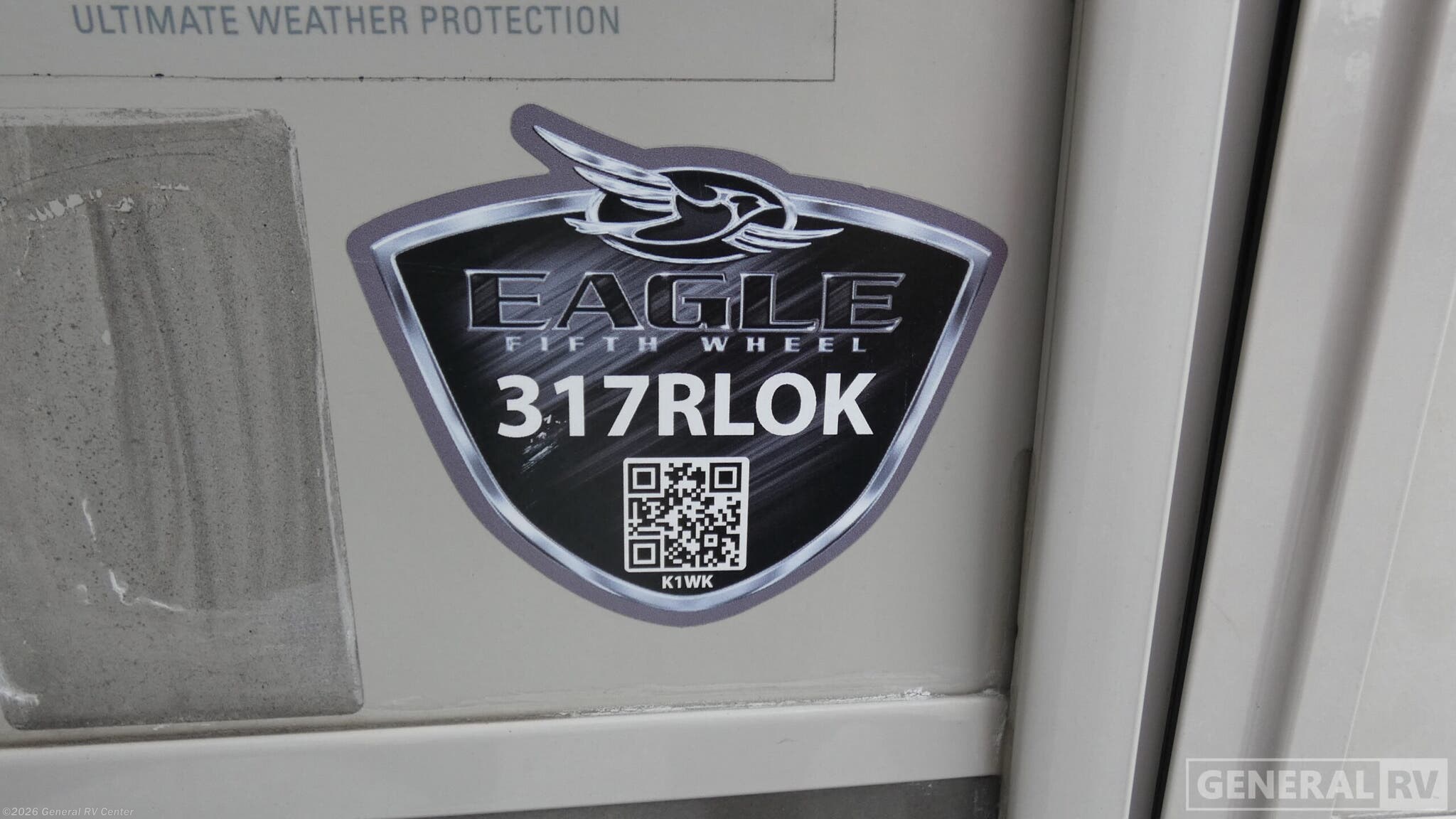 - ## Jayco Eagle fifth wheel 317RLOK highlights - Theater Seats - Kitchen Island - LED Fireplace - Outdoor Kitchen - Private Bedroom Life will be much more comfortable and luxurious when you take this Eagle fifth wheel to your favorite destinations. This model offers you a private master bedroom with plenty of storagein the large closetand another closet prepped for a washer/dryer. The dual opposing slides in the main living and kitchen area provide enough room to walk around the kitchen island to get to the residential walk-in pantry while you are preparing dinner, andyou will even find a ceiling fan and theater seats to make you more comfortable as you watch the LED HDTV. If you need more entertaining and cooking space, the outdoor kitchen offers that to you with its "Industry's Best" features, like the specialty lighting and Jayco bottle opener. With modern styling and innovative design, the Jayco Eagle boasts an upgraded travel experience for everyone! Each Eagle offersStrongholdVBL exterior walls, a Magnum Truss roof system which is the strongest roof in the industry, and Climate Shield zero-degree-tested weather protection so that you can consistently enjoy four seasons of traveling. The industry-exclusive HELIX cooling system provides you with a "Whisper Quiet" 15,000 BTU A/C unit, as well as a Jayco-exclusive insulated duct design. As an industry first, Jayco is proud to include preparations for rooftop and ground solar panels by Go Power® in every Eagle, and the Keyed Alike™ lock system will ensure that you are in complete control of everything you have stored in the enormous pass-through storage compartment.