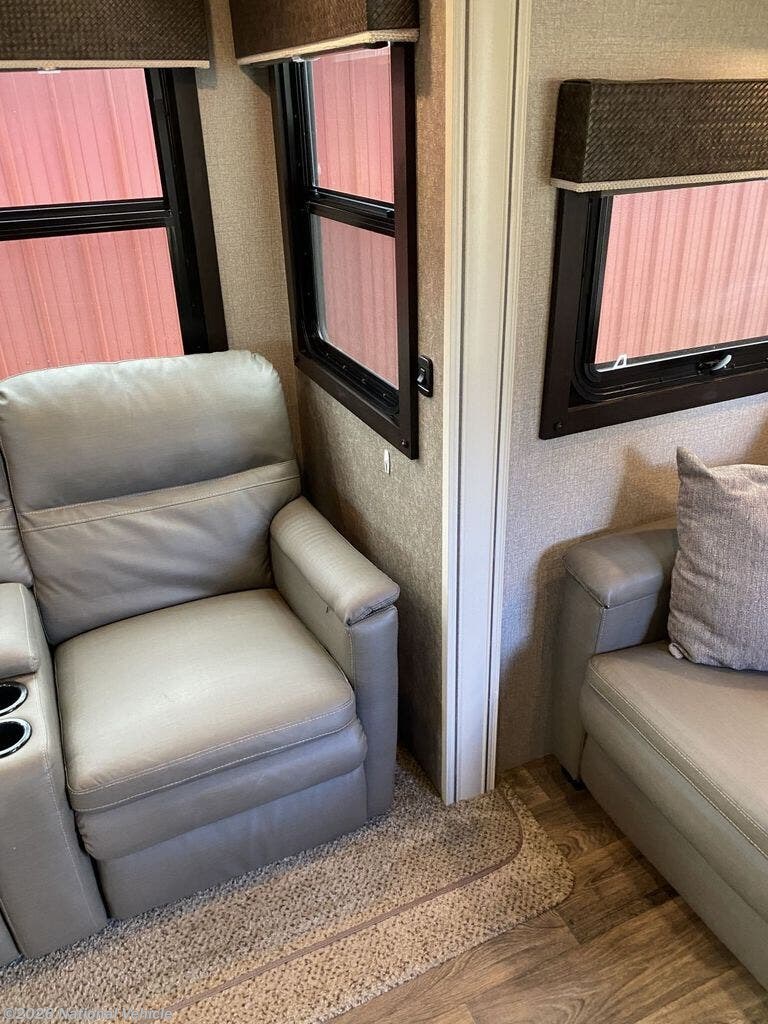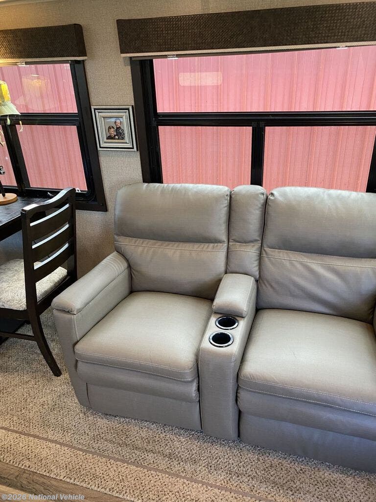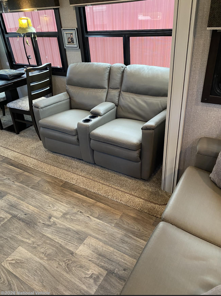 Inside, the living area is warm, inviting, and built for relaxation. Theater seating offers the perfect spot to unwind, complemented by brand-new custom blinds from Blinds.com?installed after the originals didn?t meet expectations, ensuring both style and quality. Climate control is exceptional with dual A/C units, keeping the coach comfortable in any season.