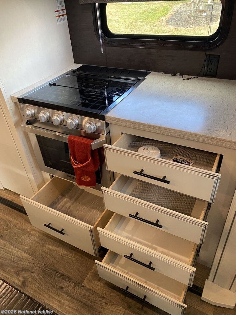 From the moment you arrive, the auto-leveling system makes setup quick and stress-free, while keyless entry adds modern convenience and security. Towing is a breeze thanks to the PullRite auto-slide hitch with Dodge Ram puck base, giving short-bed truck owners peace of mind and precision handling.