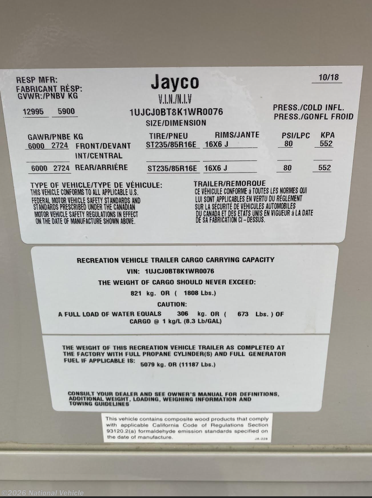 Request More Info on this 2019 Jayco Eagle 319MLOK Offered for sale by National Vehicle