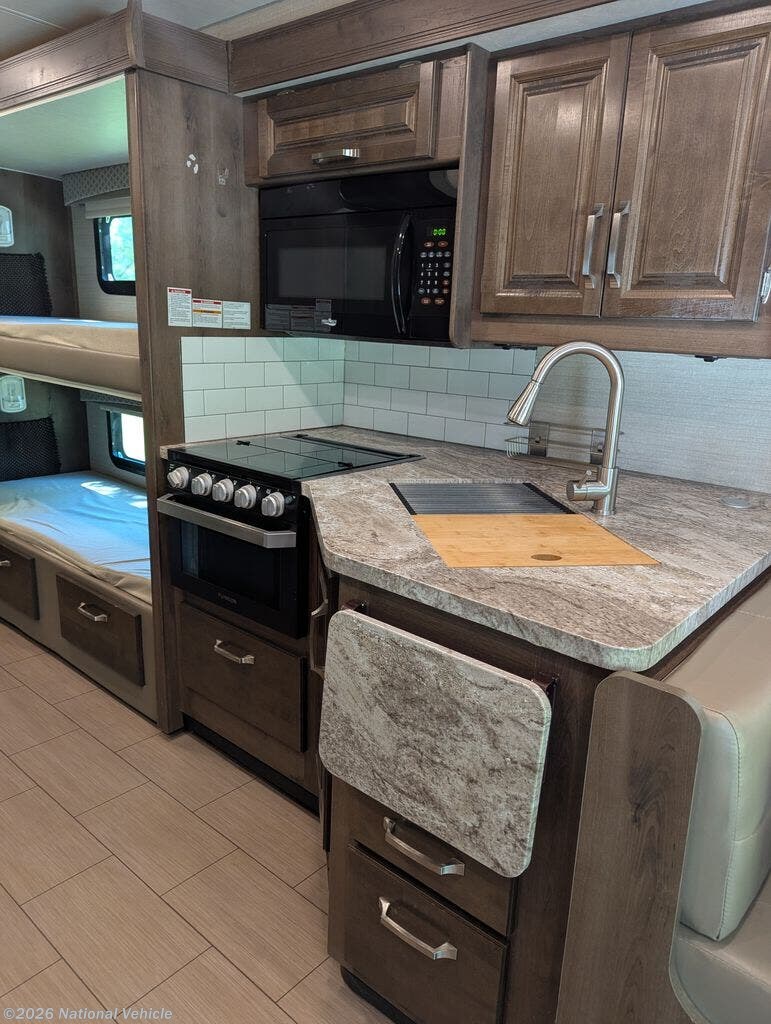 The 31F features a popular bunkhouse layout with dedicated sleeping space for the whole crew ? including two bunk beds, a bunk over cab, a convertible dinette, sofa bed, and a rear queen-sized bed in the private master bedroom.