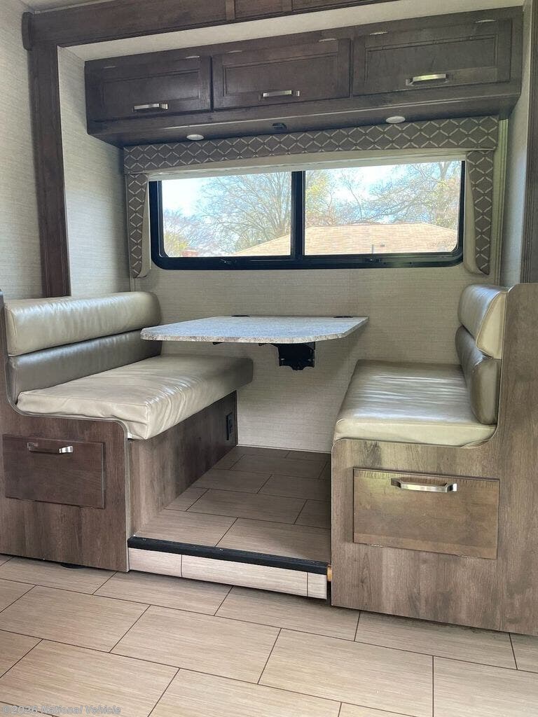 Imagine the road trips your family will enjoy in this Melbourne class C diesel coach. With two nice slides you will find plenty of space for everyone to move around comfortably. Inside, you will find plenty of storage for your things, plus there is an outdoor pass-through compartment for all of your outdoor gear as well. A 14' electric awning provides plenty of shade and creates a nice outdoor living space to enjoy. When night falls, you will find sleeping space for five or six with the overhead bunk in front, a private queen bed that slides out in back, and two small children or one adult can easily sleep on the booth dinette once folded down.