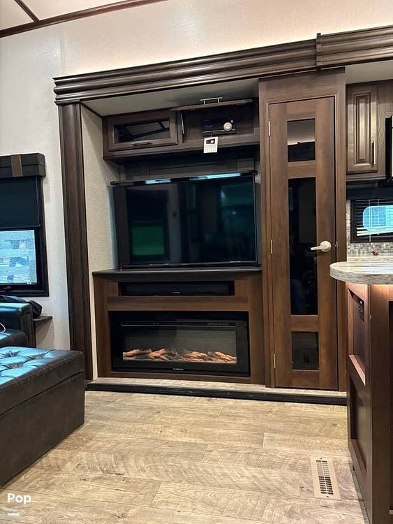 Relax on the sofa/sleeper or the power theater seats, equipped with heat and massage, and enjoy the flat-screen TV and fireplace.