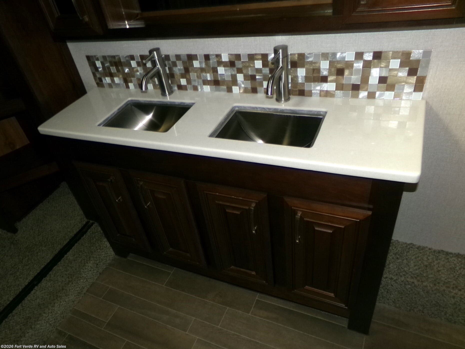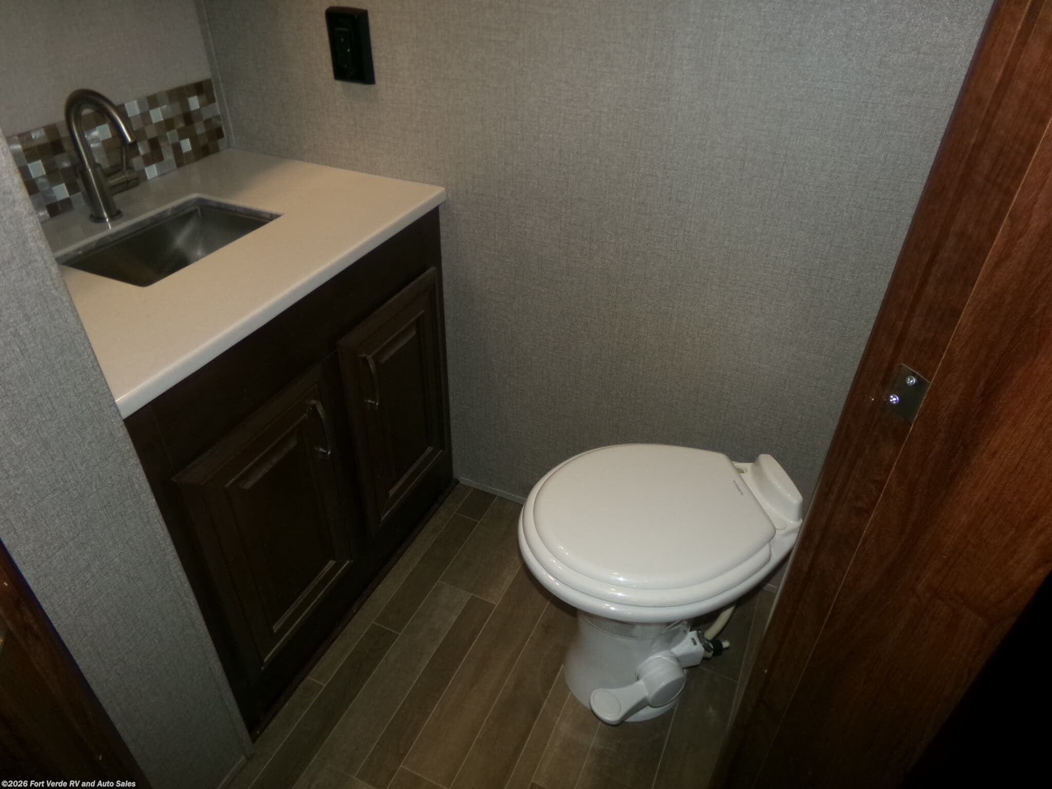 Not only that, but Jayco did not name this fifth wheel “Pinnacle” without good reason. The materials quality is very high, with plenty of real wood. There are 1 and ½ baths! So, when someone is showering, others still have access to a bathroom.