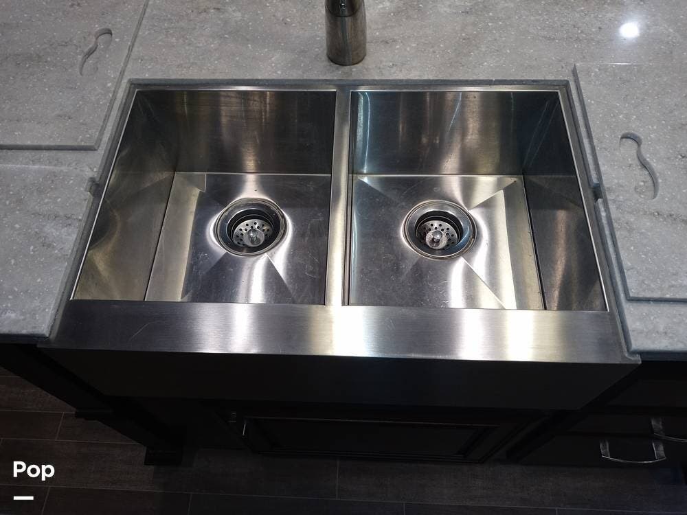 Residential features include a large double kitchen sink, a microwave oven, and a stovetop with an oven! Four-door refrigerator!